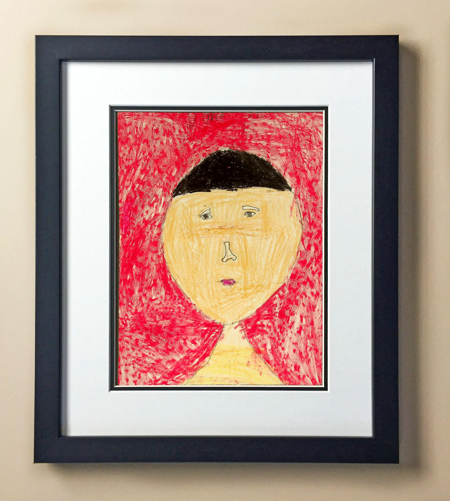 Included with the purchase is the Students Artwork, Frame, double matboard, shatter proof plexiglass, and a ready to hang backerboard with turnbuttons