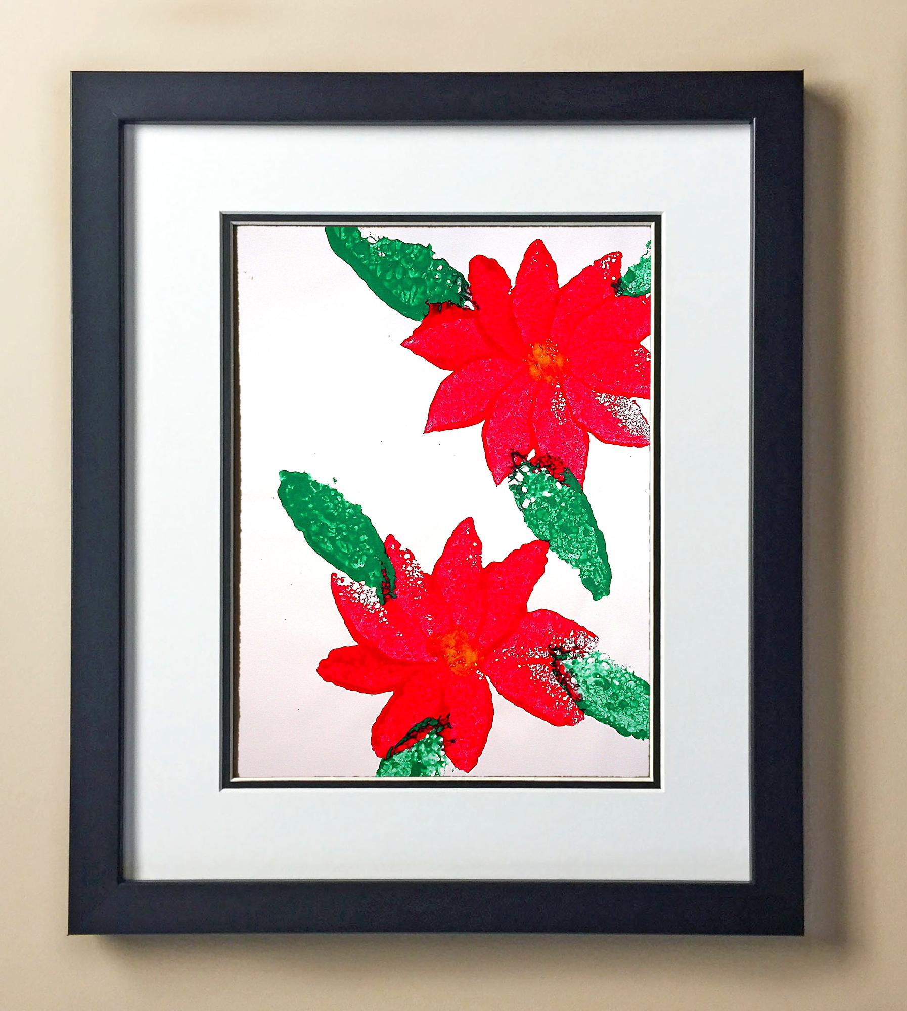 Included with the purchase is the Students Artwork, Frame, double matboard, shatter proof plexiglass, and a ready to hang backerboard with turnbuttons