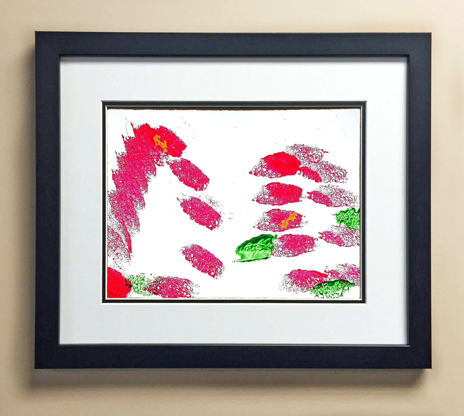 Included with the purchase is the Students Artwork, Frame, double matboard, shatter proof plexiglass, and a ready to hang backerboard with turnbuttons
