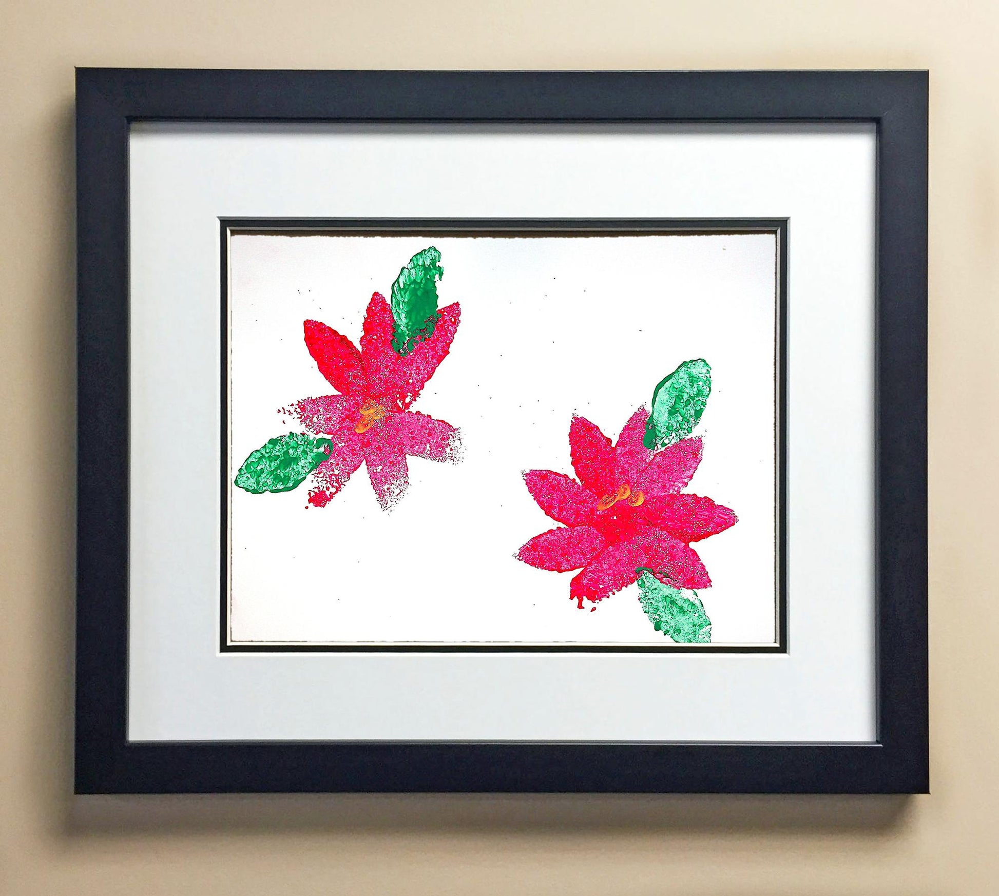 Included with the purchase is the Students Artwork, Frame, double matboard, shatter proof plexiglass, and a ready to hang backerboard with turnbuttons