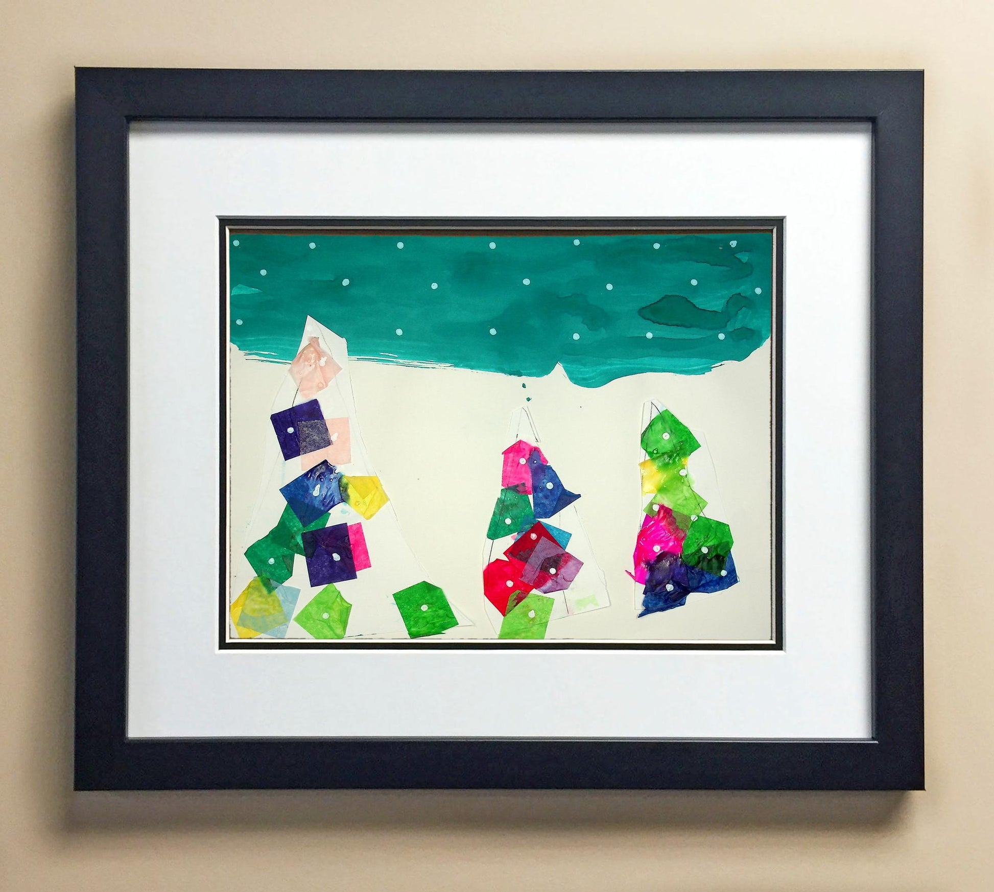 Included with the purchase is the Students Artwork, Frame, double matboard, shatter proof plexiglass, and a ready to hang backerboard with turnbuttons