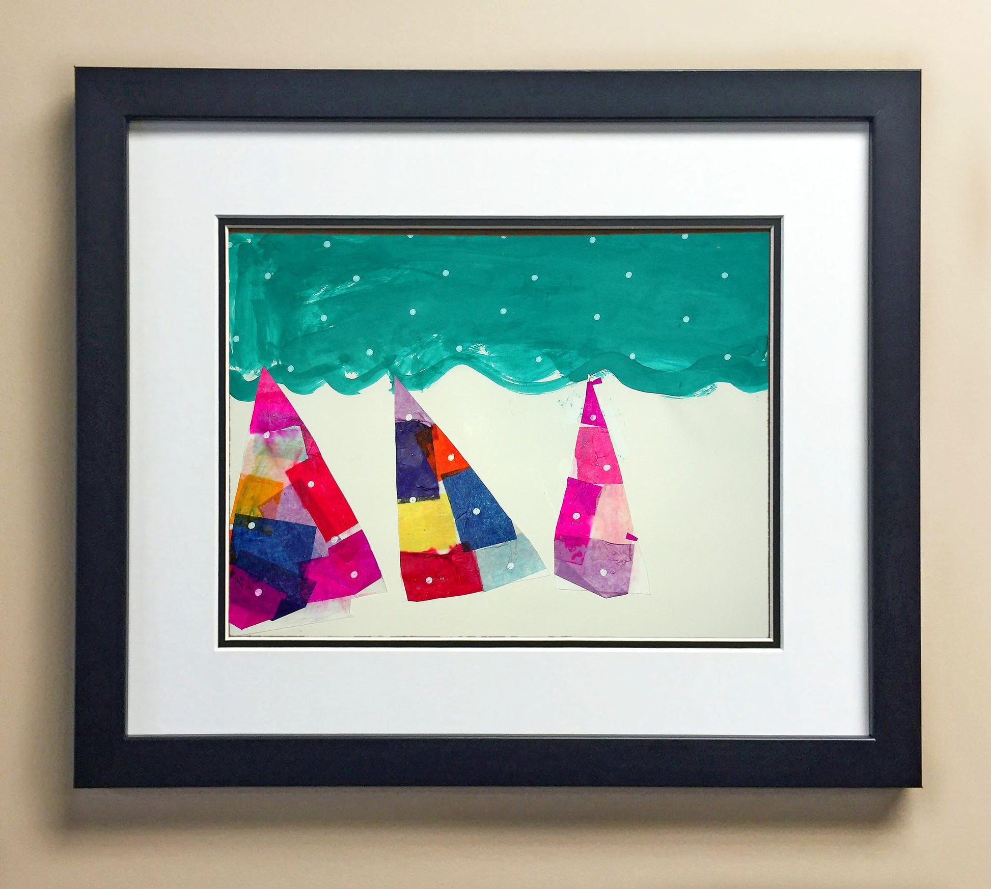 Included with the purchase is the Students Artwork, Frame, double matboard, shatter proof plexiglass, and a ready to hang backerboard with turnbuttons