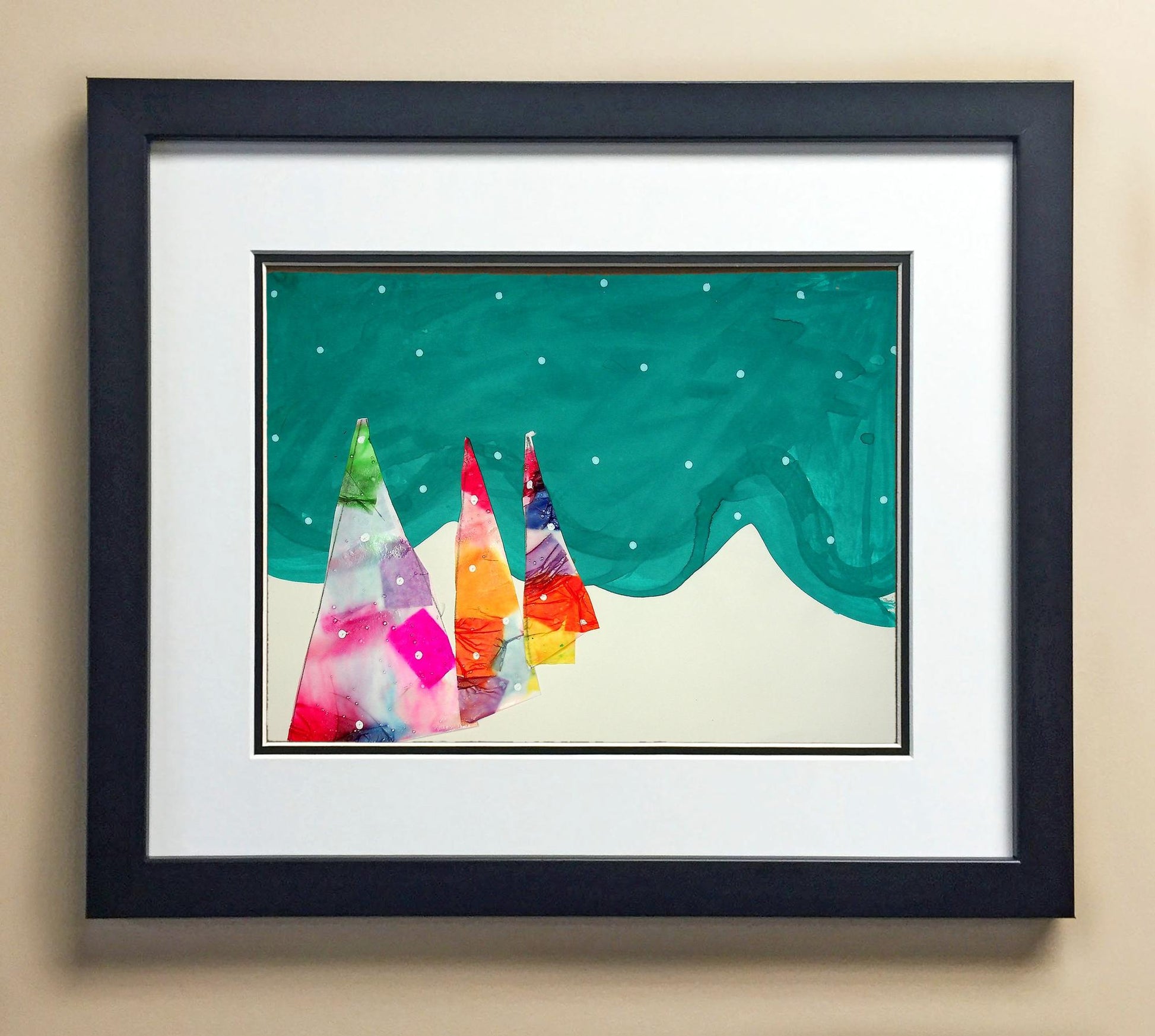 Included with the purchase is the Students Artwork, Frame, double matboard, shatter proof plexiglass, and a ready to hang backerboard with turnbuttons