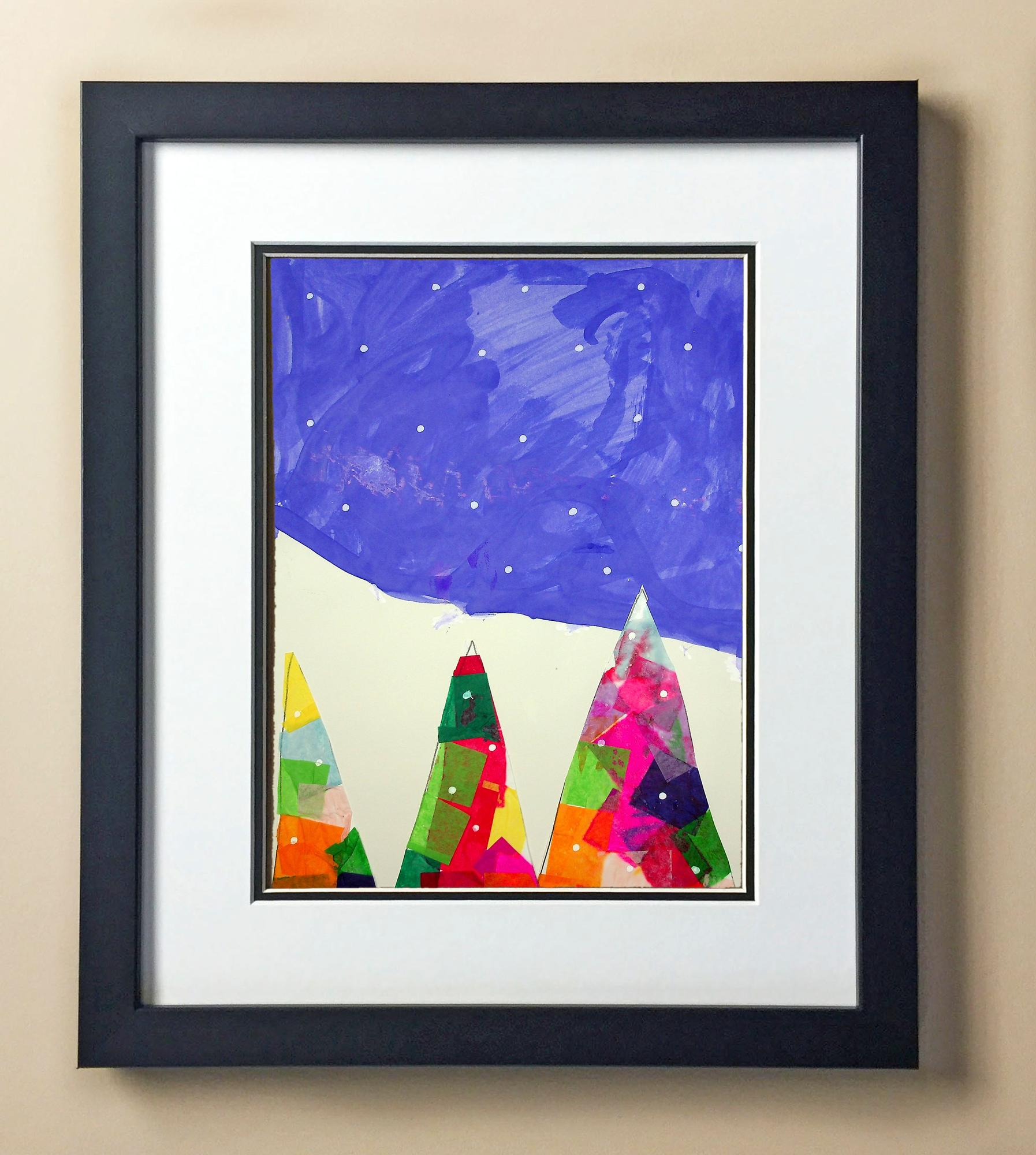 Included with the purchase is the Students Artwork, Frame, double matboard, shatter proof plexiglass, and a ready to hang backerboard with turnbuttons