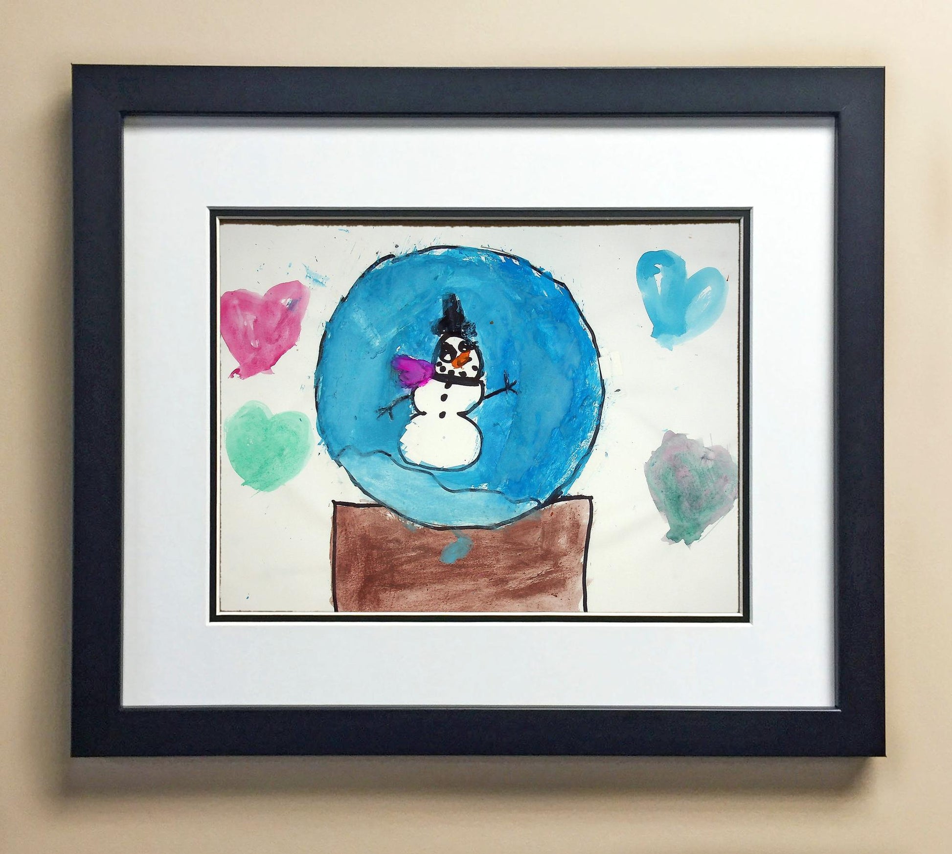 Included with the purchase is the Students Artwork, Frame, double matboard, shatter proof plexiglass, and a ready to hang backerboard with turnbuttons