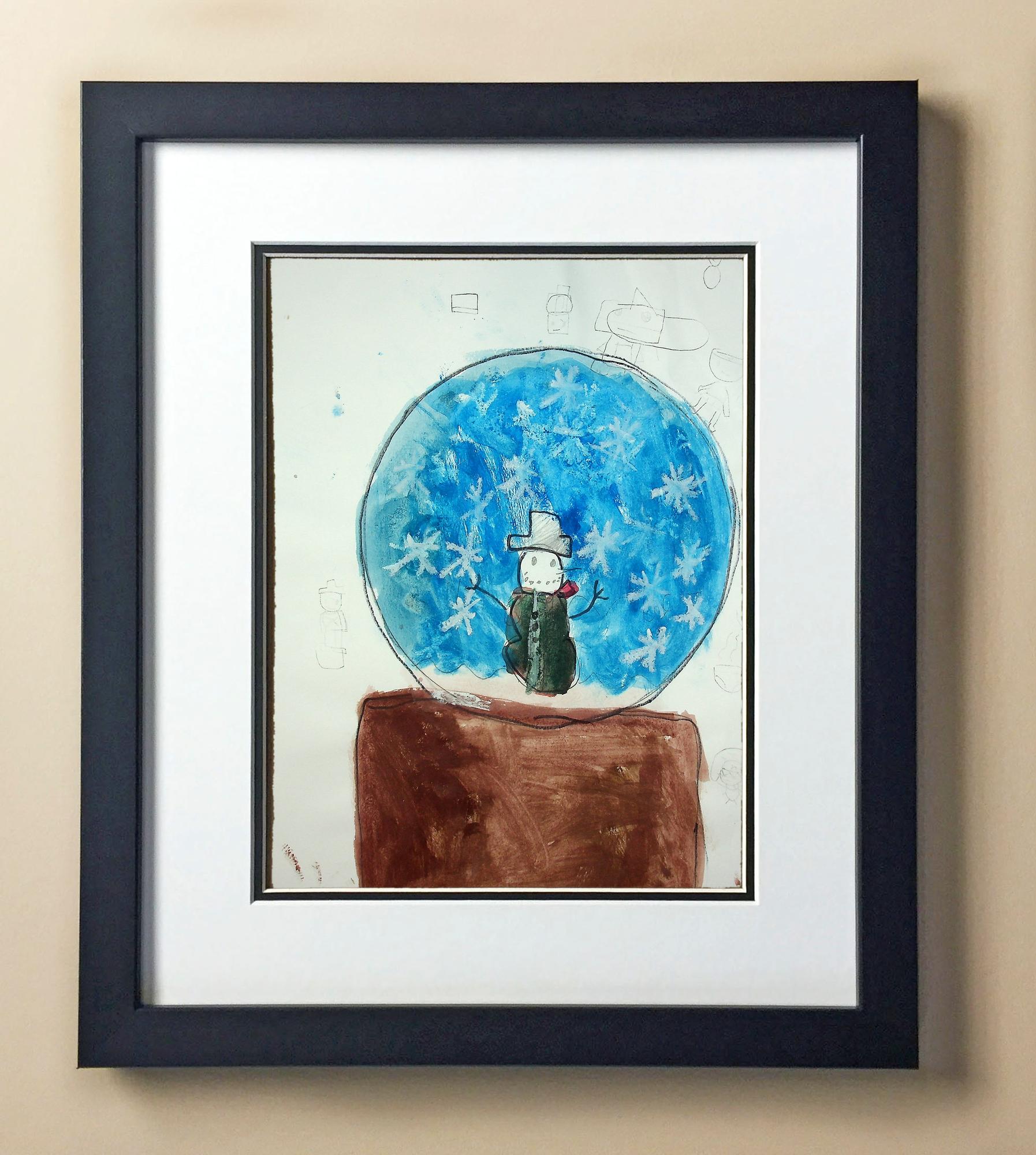 Included with the purchase is the Students Artwork, Frame, double matboard, shatter proof plexiglass, and a ready to hang backerboard with turnbuttons