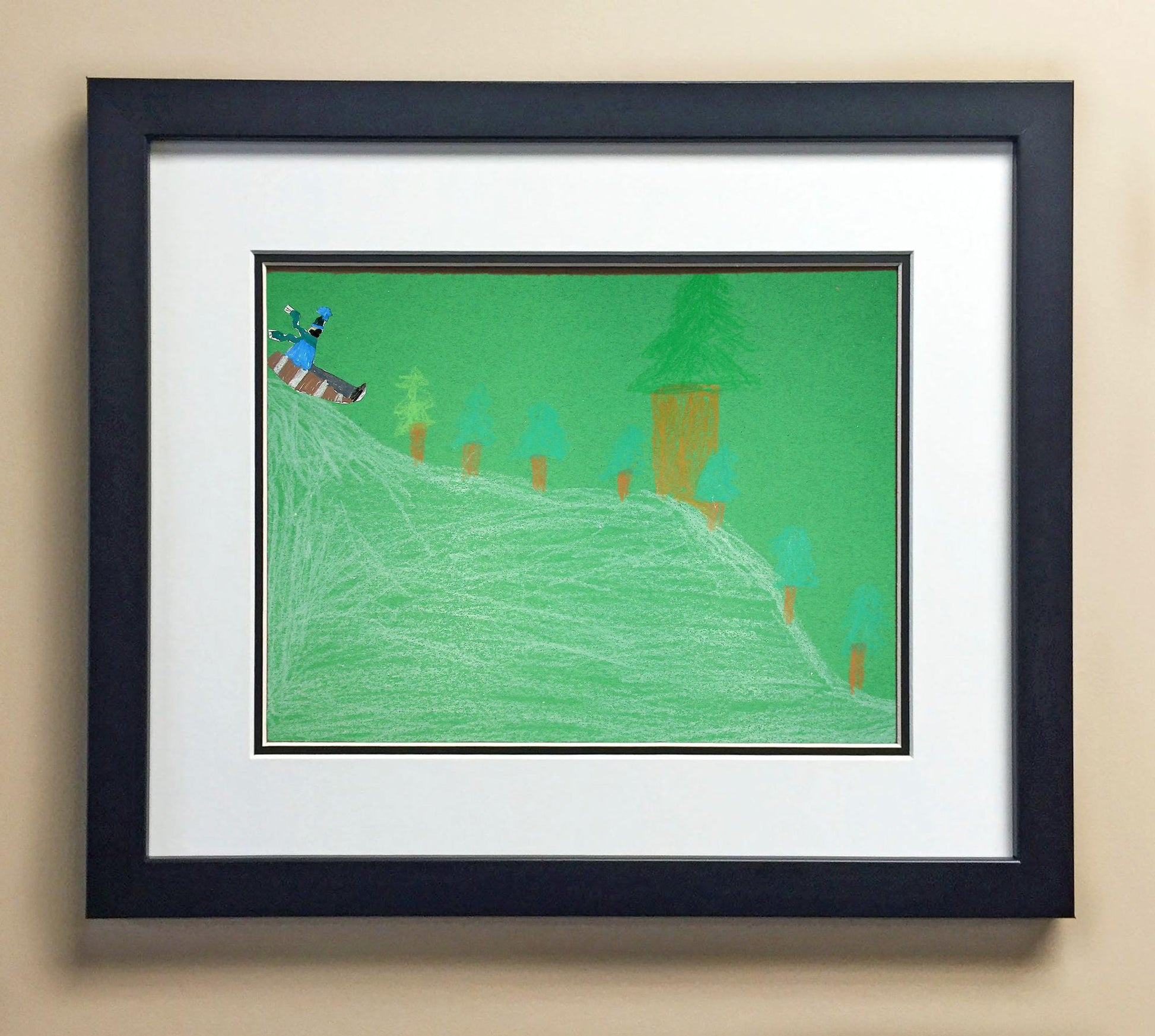 Included with the purchase is the Students Artwork, Frame, double matboard, shatter proof plexiglass, and a ready to hang backerboard with turnbuttons