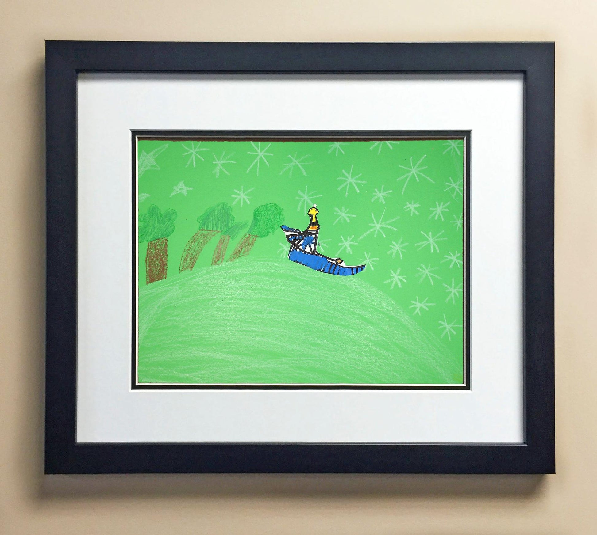 Included with the purchase is the Students Artwork, Frame, double matboard, shatter proof plexiglass, and a ready to hang backerboard with turnbuttons
