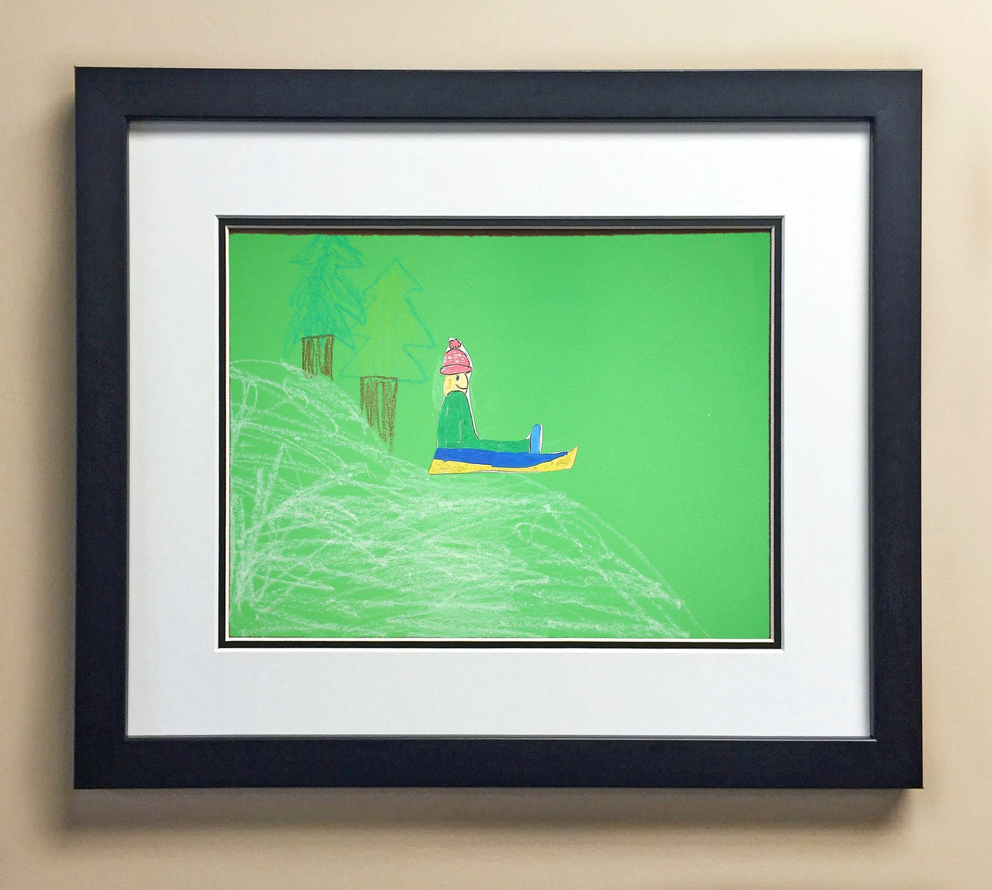 Included with the purchase is the Students Artwork, Frame, double matboard, shatter proof plexiglass, and a ready to hang backerboard with turnbuttons