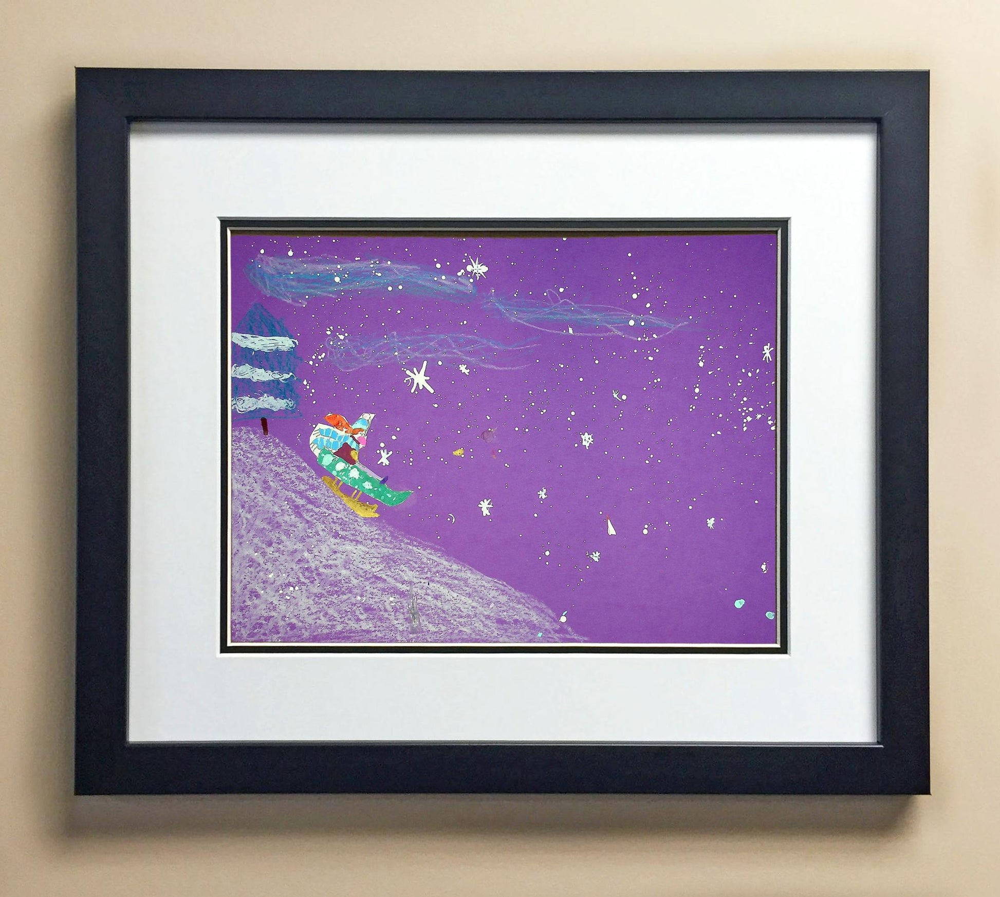 Included with the purchase is the Students Artwork, Frame, double matboard, shatter proof plexiglass, and a ready to hang backerboard with turnbuttons