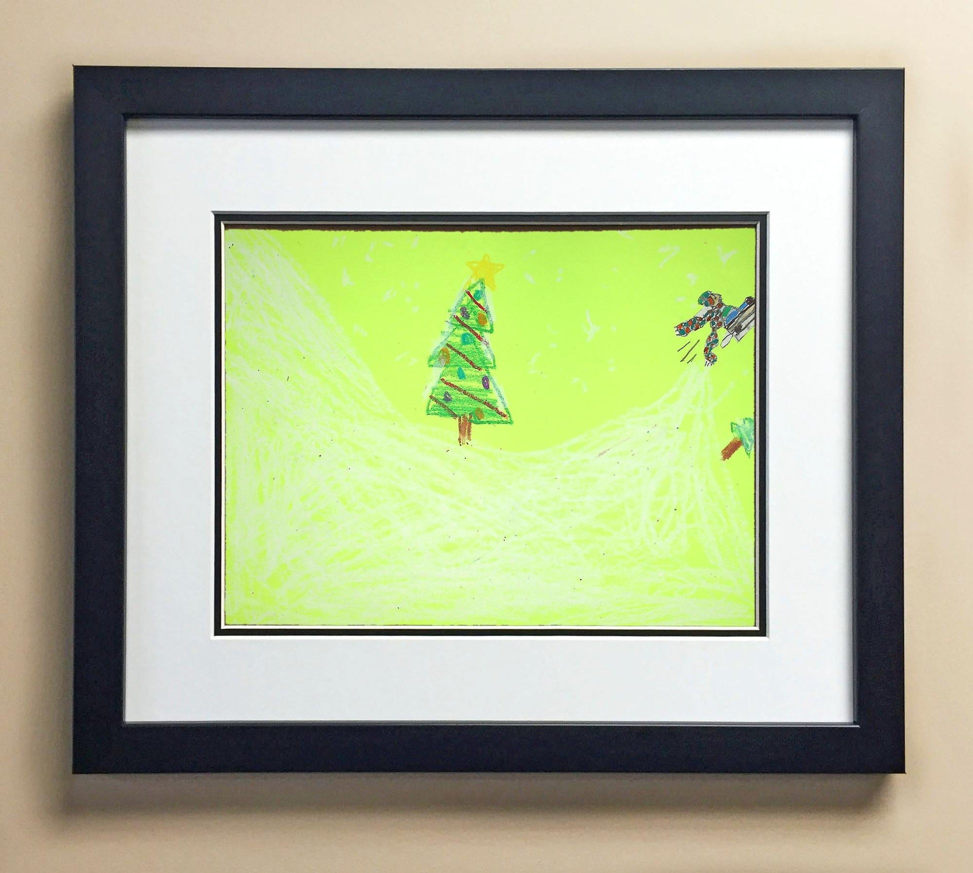 Included with the purchase is the Students Artwork, Frame, double matboard, shatter proof plexiglass, and a ready to hang backerboard with turnbuttons