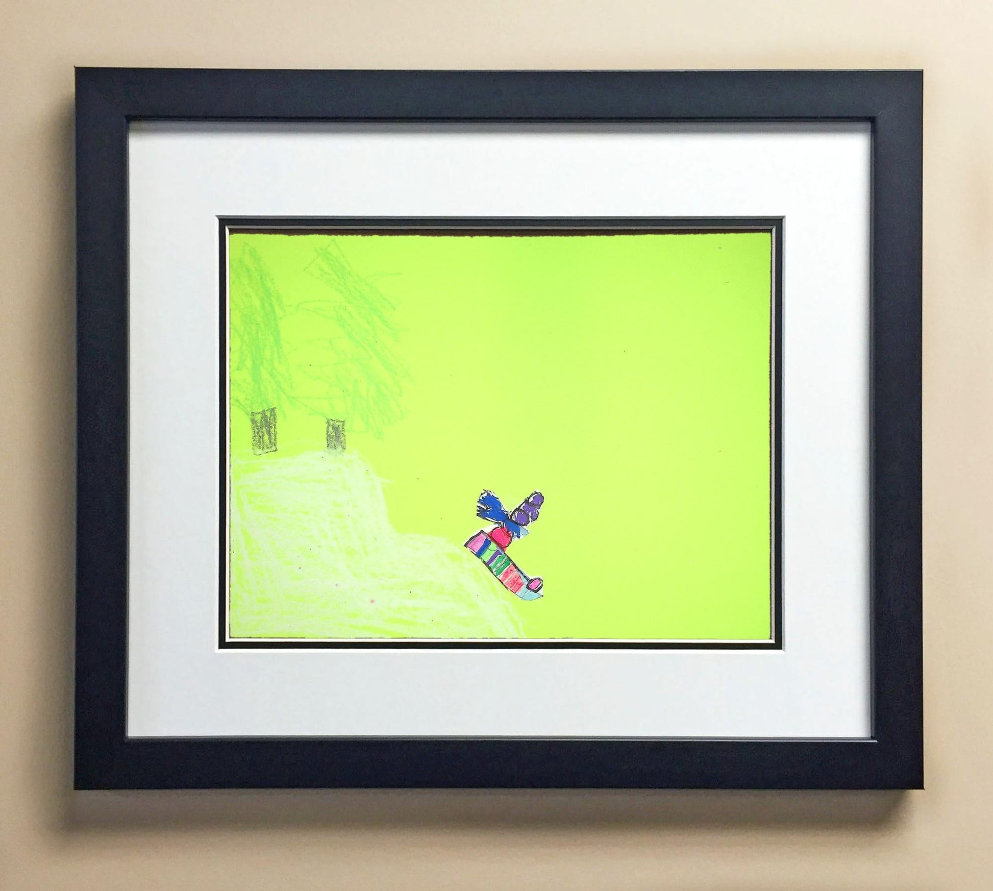 Included with the purchase is the Students Artwork, Frame, double matboard, shatter proof plexiglass, and a ready to hang backerboard with turnbuttons