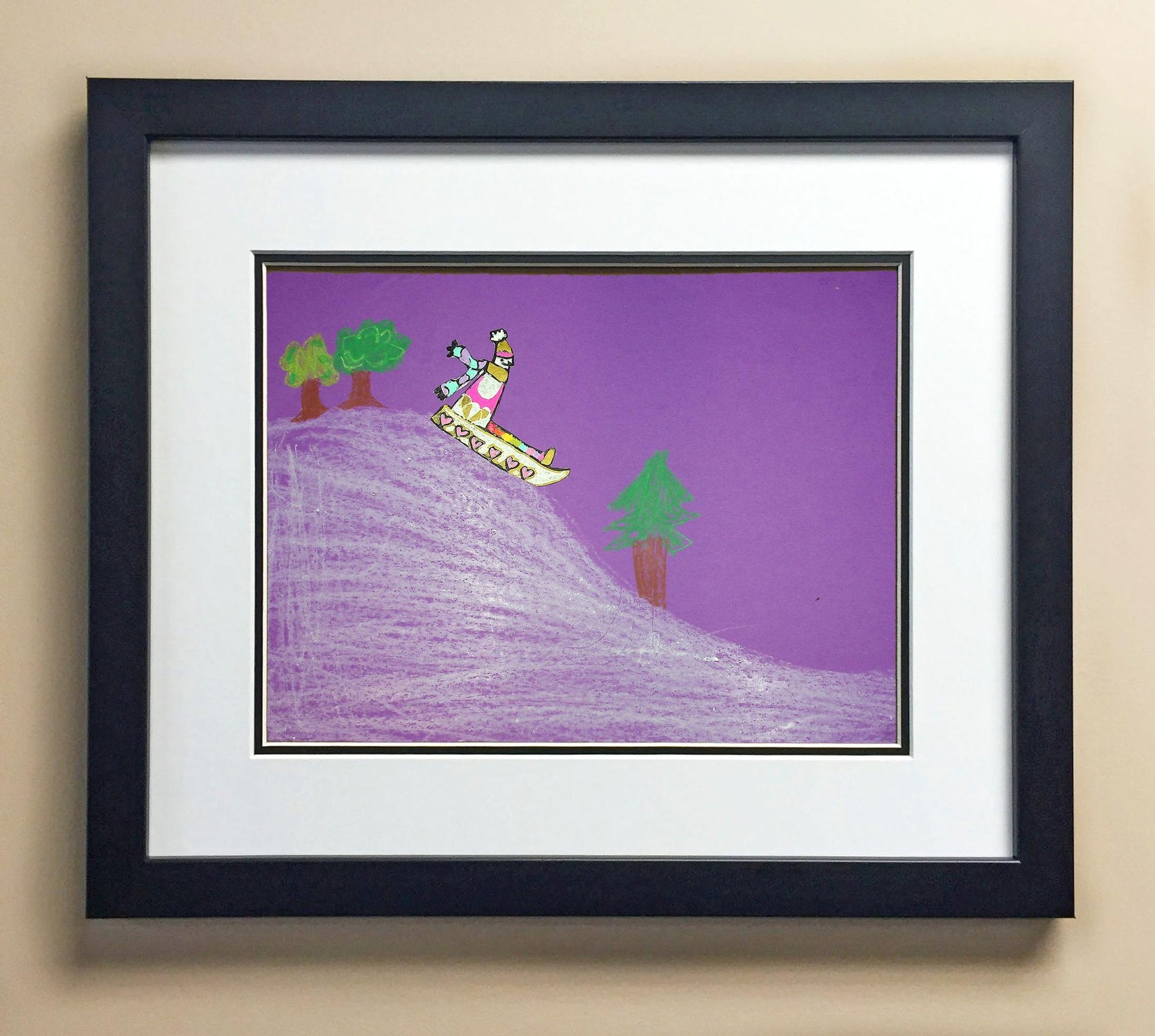 Included with the purchase is the Students Artwork, Frame, double matboard, shatter proof plexiglass, and a ready to hang backerboard with turnbuttons