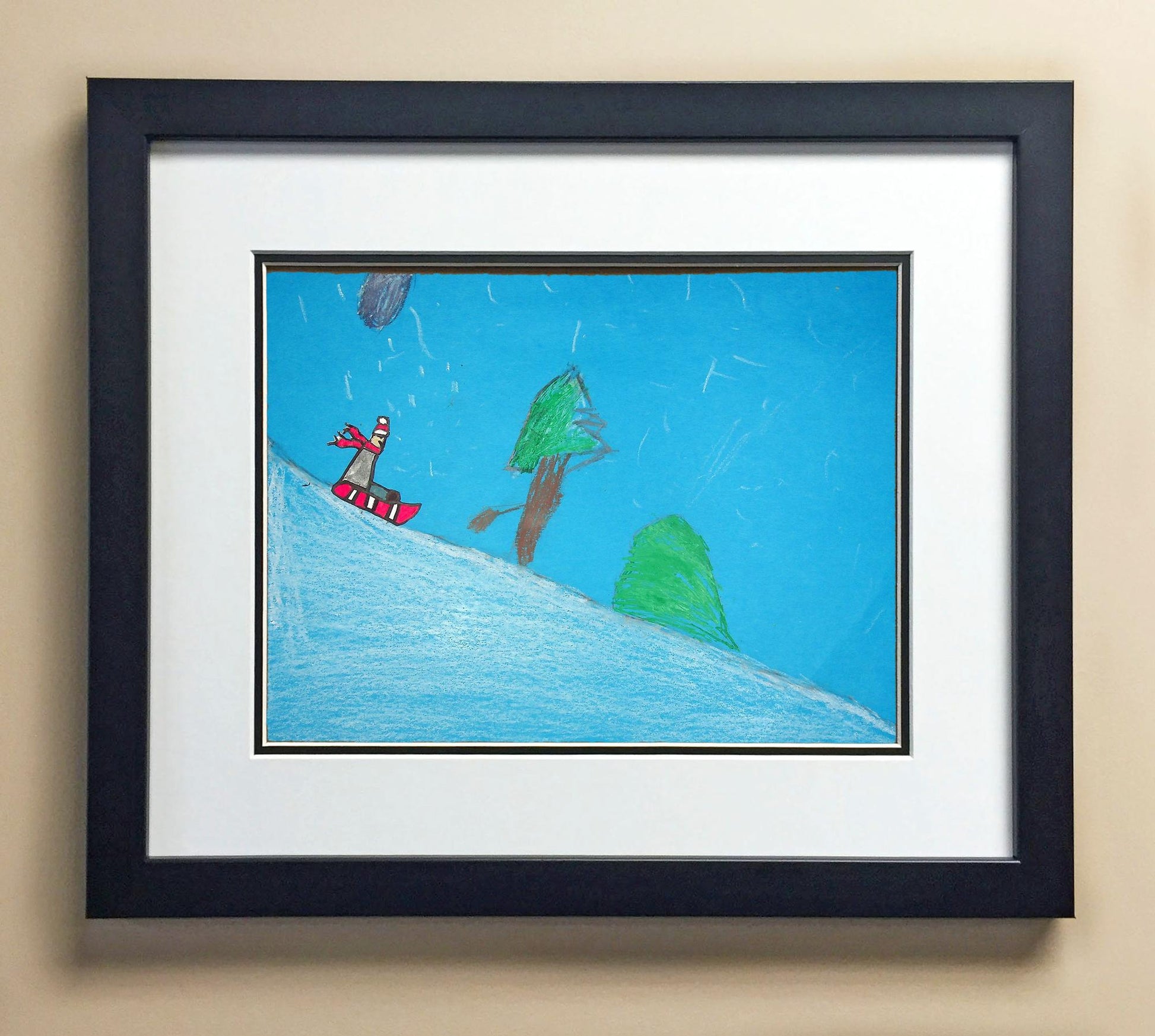Included with the purchase is the Students Artwork, Frame, double matboard, shatter proof plexiglass, and a ready to hang backerboard with turnbuttons
