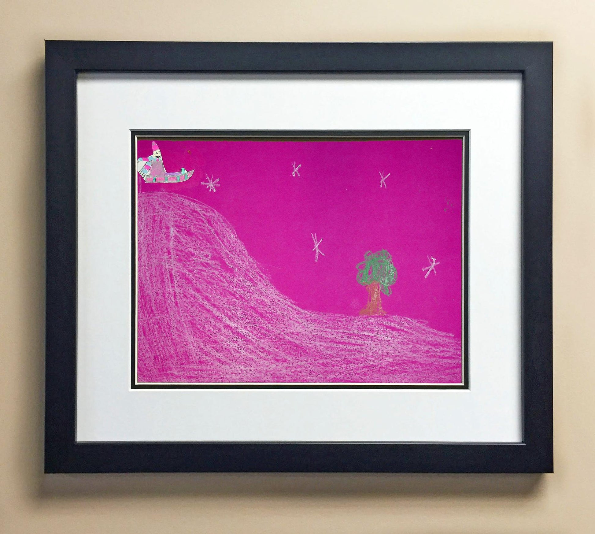 Included with the purchase is the Students Artwork, Frame, double matboard, shatter proof plexiglass, and a ready to hang backerboard with turnbuttons