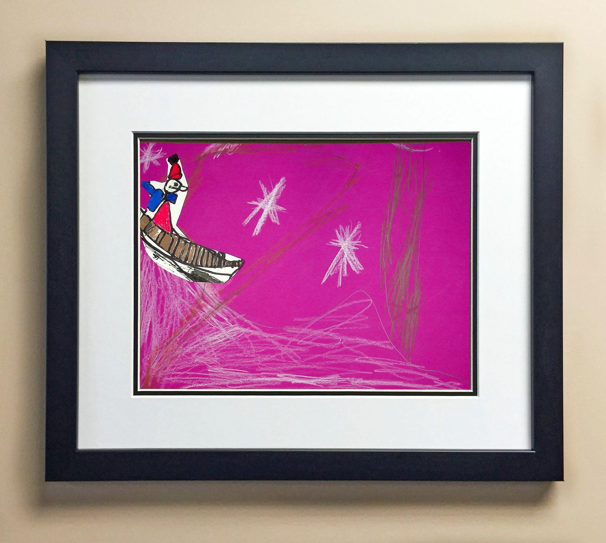 Included with the purchase is the Students Artwork, Frame, double matboard, shatter proof plexiglass, and a ready to hang backerboard with turnbuttons