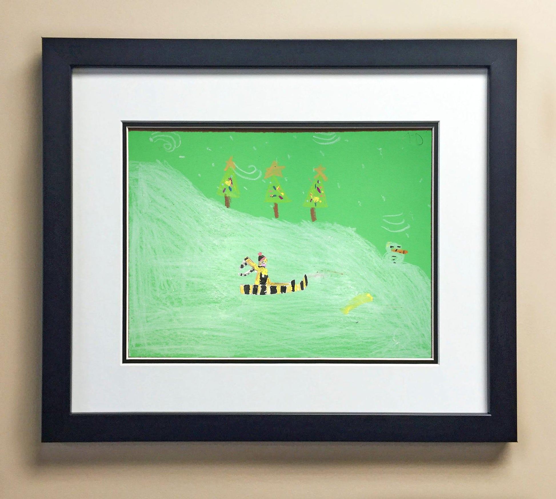 Included with the purchase is the Students Artwork, Frame, double matboard, shatter proof plexiglass, and a ready to hang backerboard with turnbuttons