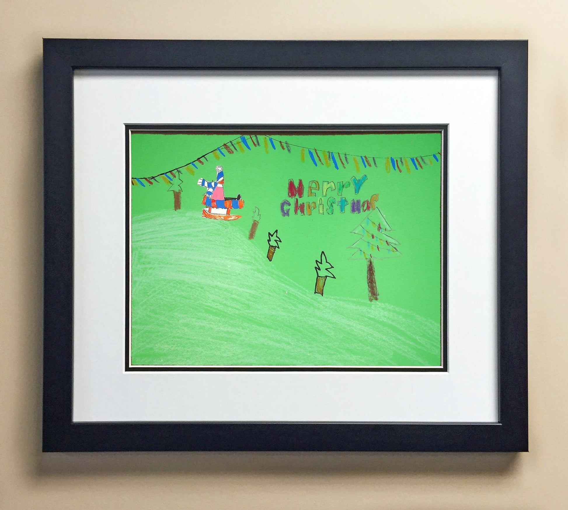 Included with the purchase is the Students Artwork, Frame, double matboard, shatter proof plexiglass, and a ready to hang backerboard with turnbuttons