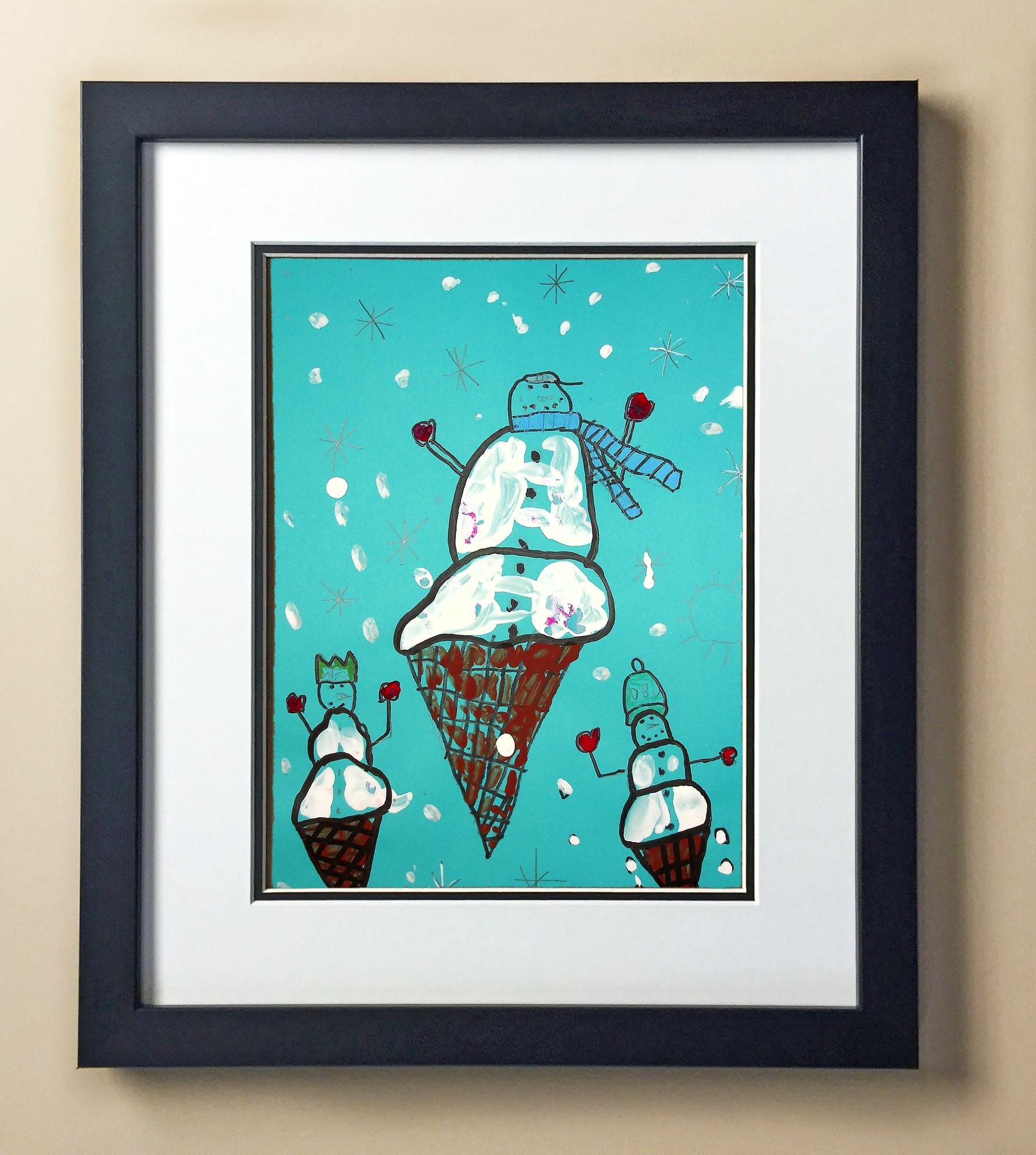Included with the purchase is the Students Artwork, Frame, double matboard, shatter proof plexiglass, and a ready to hang backerboard with turnbuttons