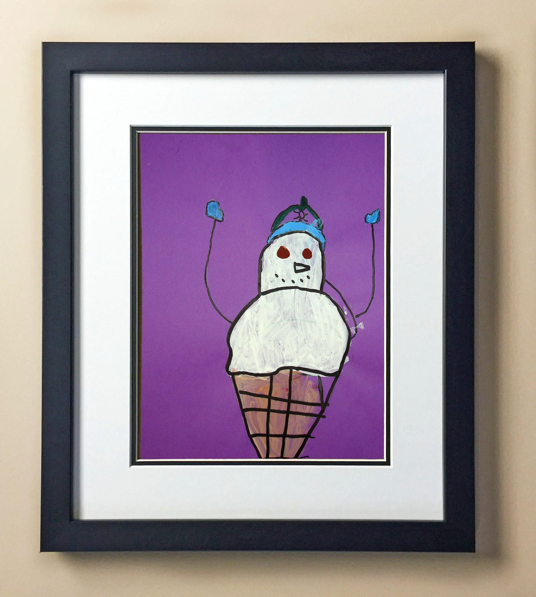 Included with the purchase is the Students Artwork, Frame, double matboard, shatter proof plexiglass, and a ready to hang backerboard with turnbuttons