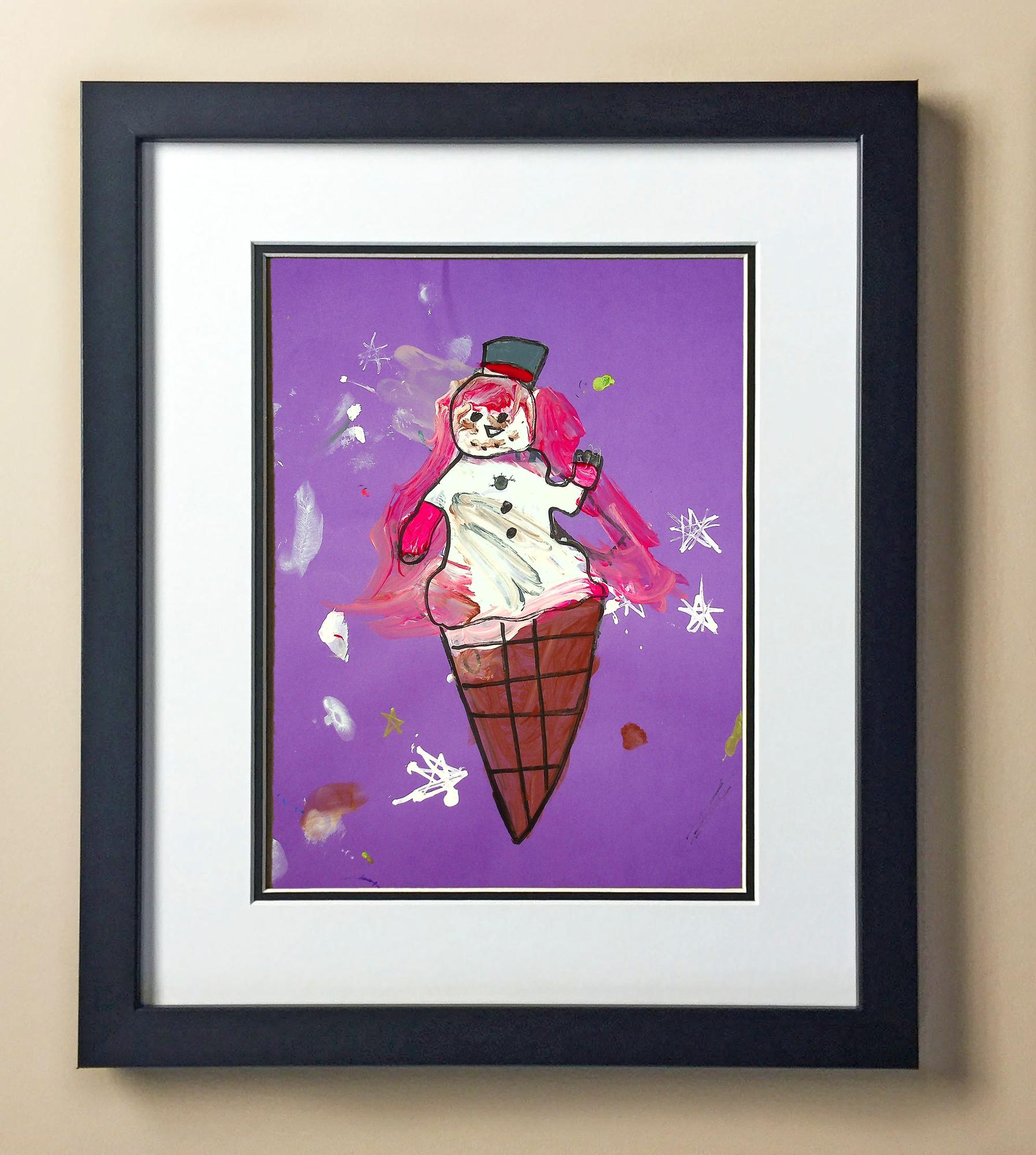 Included with the purchase is the Students Artwork, Frame, double matboard, shatter proof plexiglass, and a ready to hang backerboard with turnbuttons
