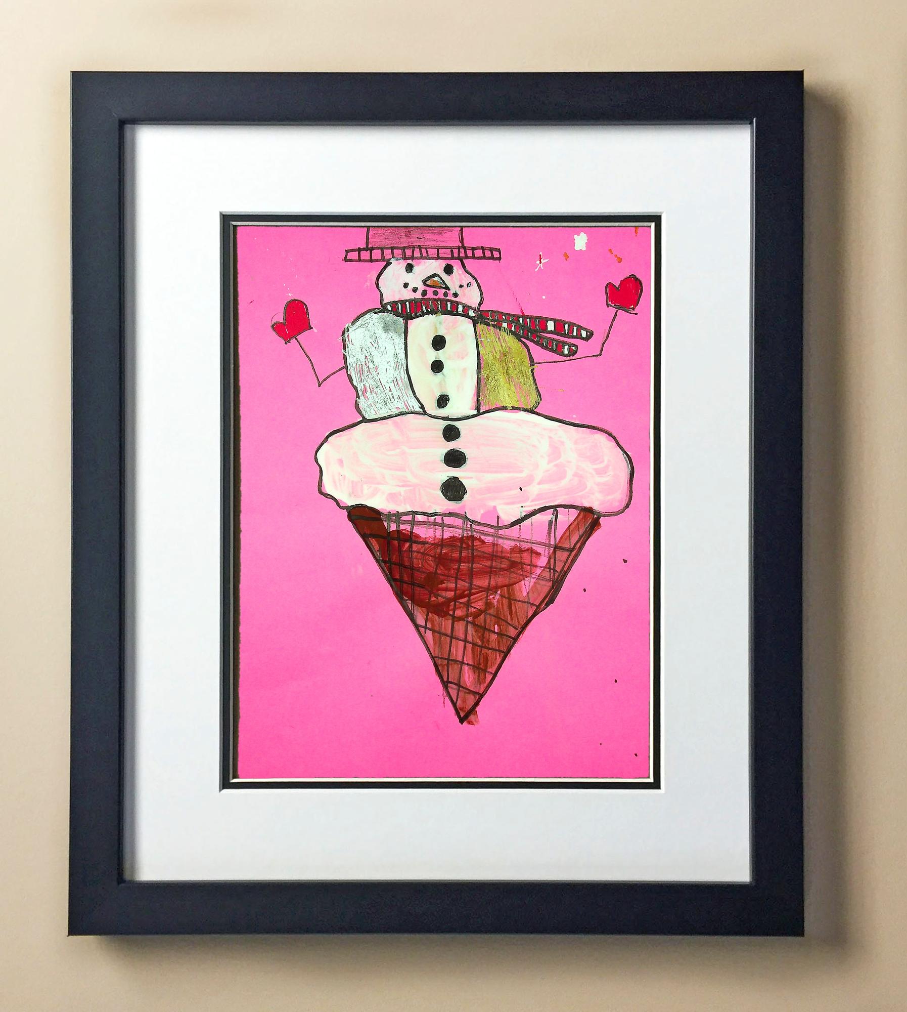 Included with the purchase is the Students Artwork, Frame, double matboard, shatter proof plexiglass, and a ready to hang backerboard with turnbuttons