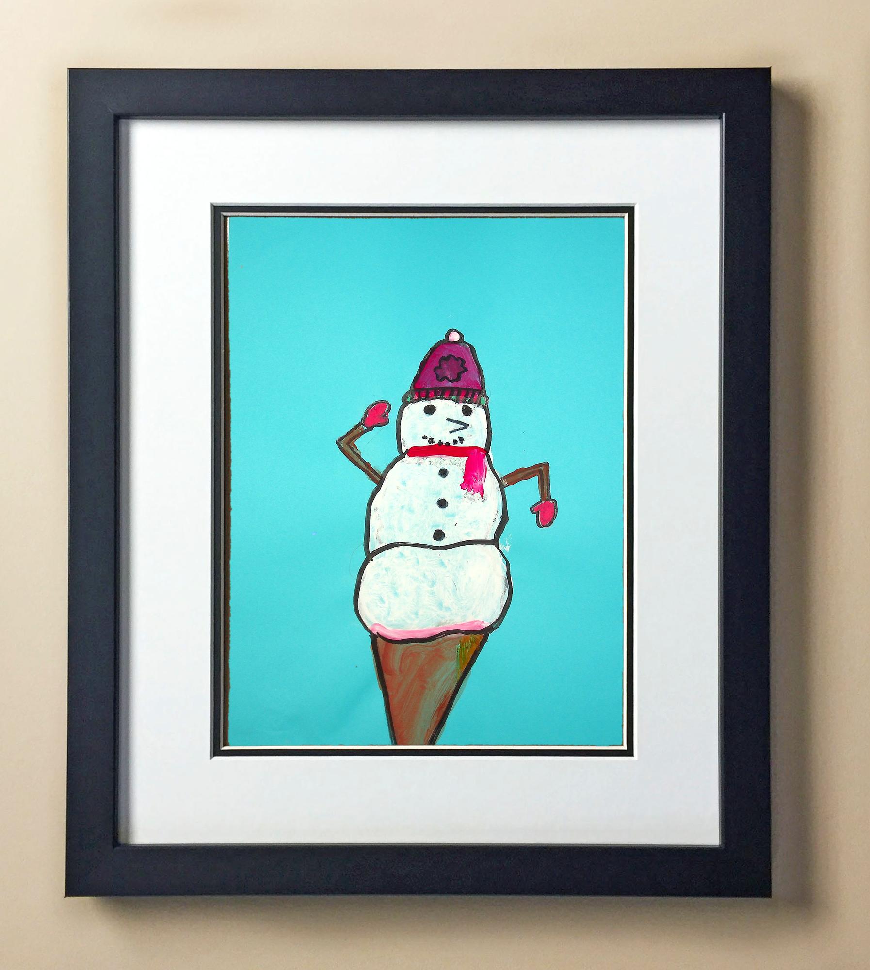 Included with the purchase is the Students Artwork, Frame, double matboard, shatter proof plexiglass, and a ready to hang backerboard with turnbuttons