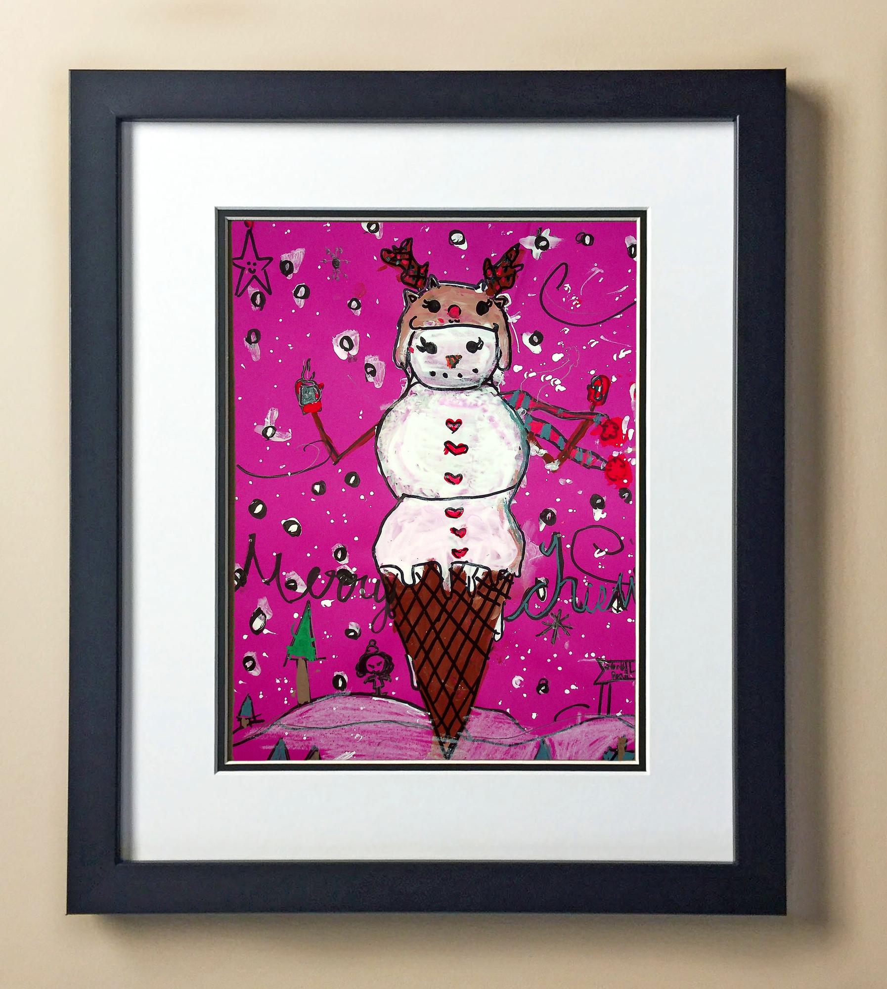 Included with the purchase is the Students Artwork, Frame, double matboard, shatter proof plexiglass, and a ready to hang backerboard with turnbuttons