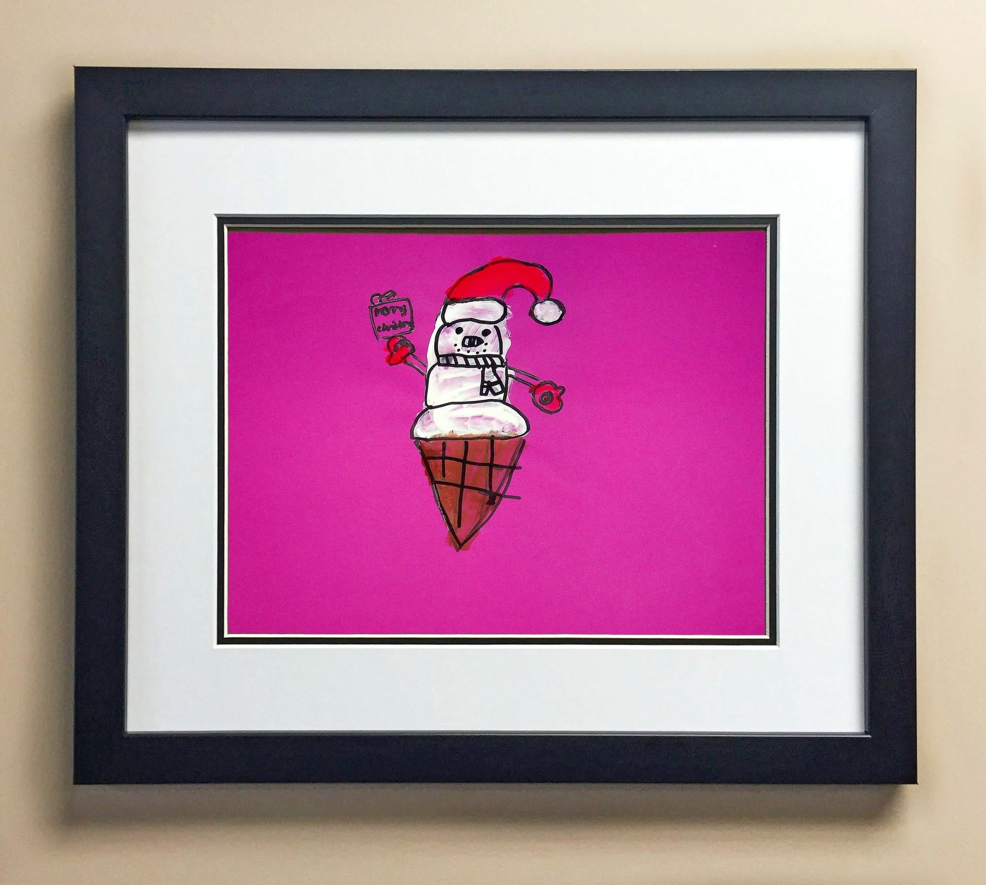 Included with the purchase is the Students Artwork, Frame, double matboard, shatter proof plexiglass, and a ready to hang backerboard with turnbuttons