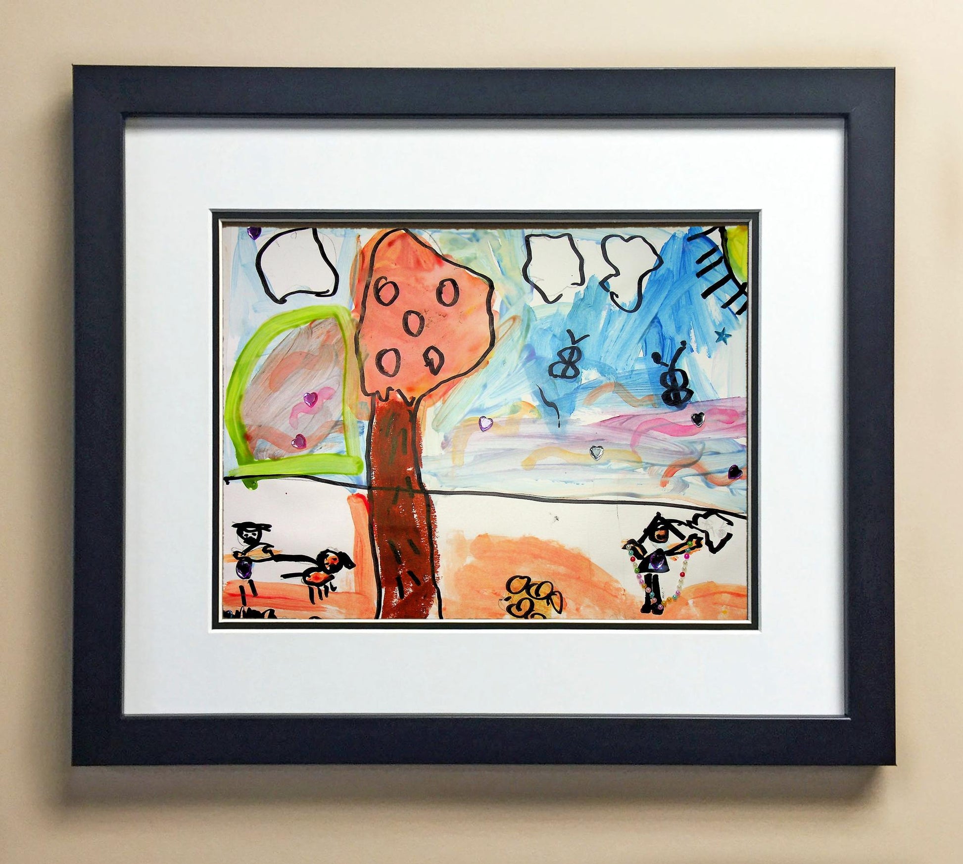 Included with the purchase is the Students Artwork, Frame, double matboard, shatter proof plexiglass, and a ready to hang backerboard with turnbuttons