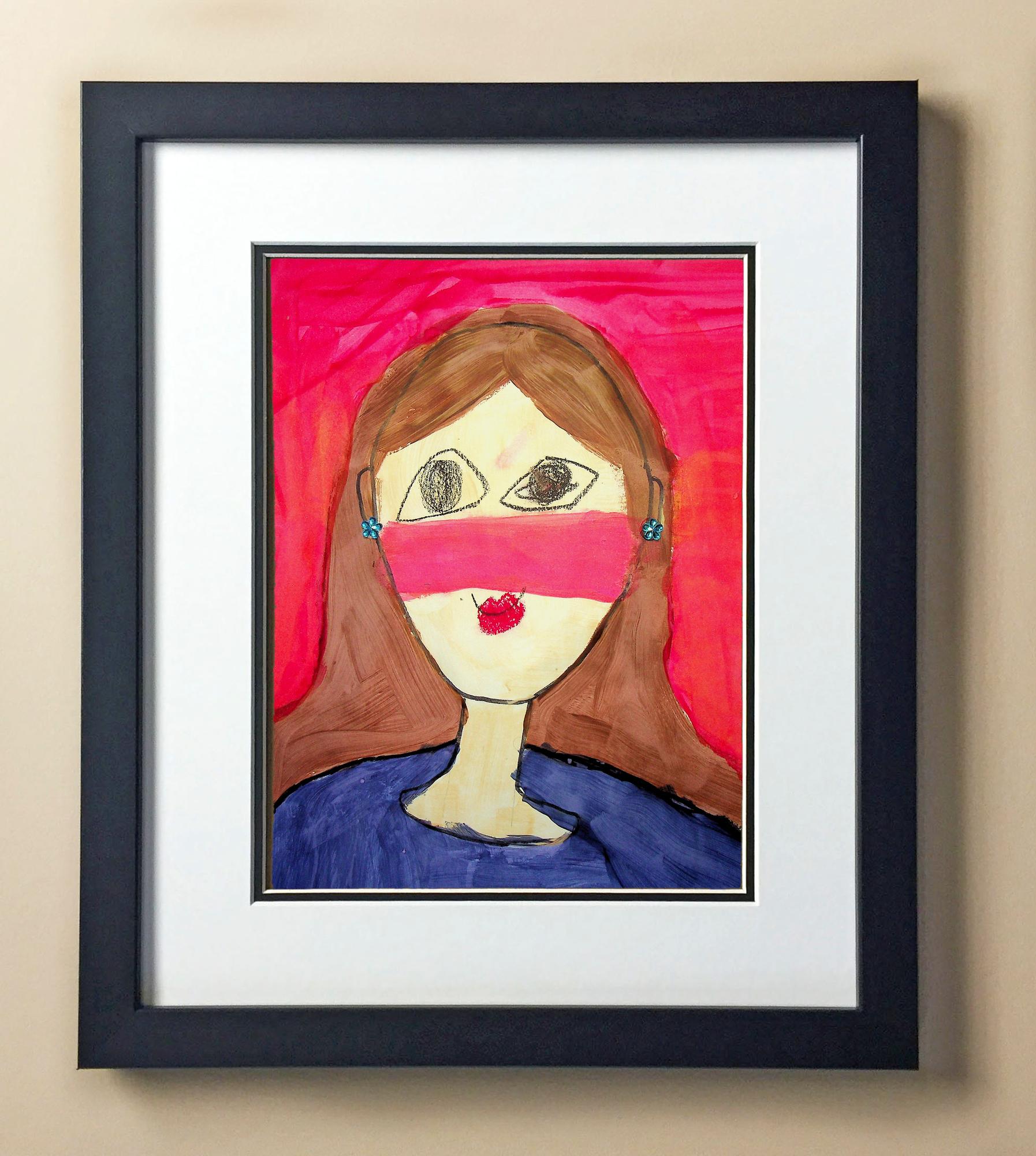 Included with the purchase is the Students Artwork, Frame, double matboard, shatter proof plexiglass, and a ready to hang backerboard with turnbuttons