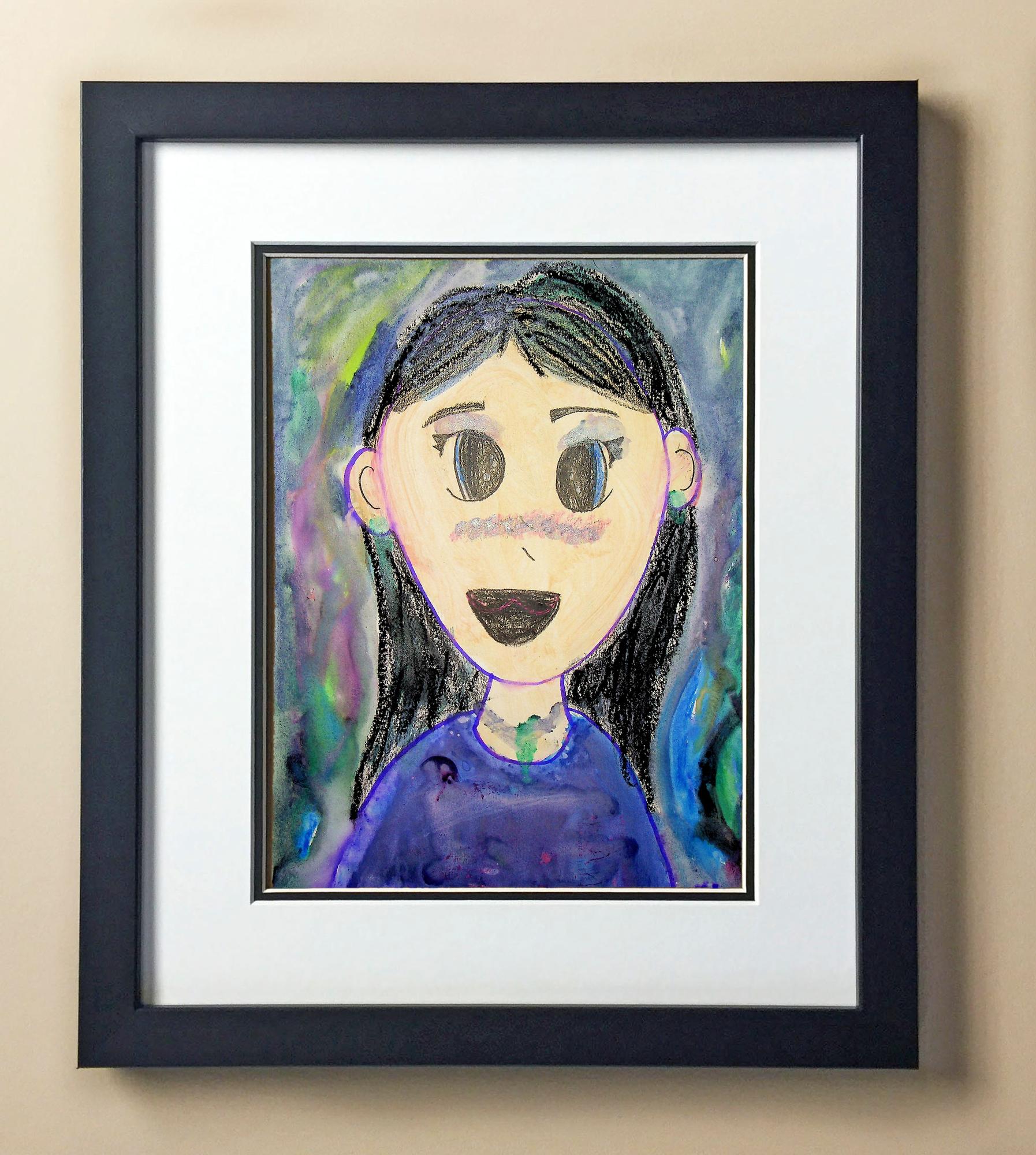 Included with the purchase is the Students Artwork, Frame, double matboard, shatter proof plexiglass, and a ready to hang backerboard with turnbuttons