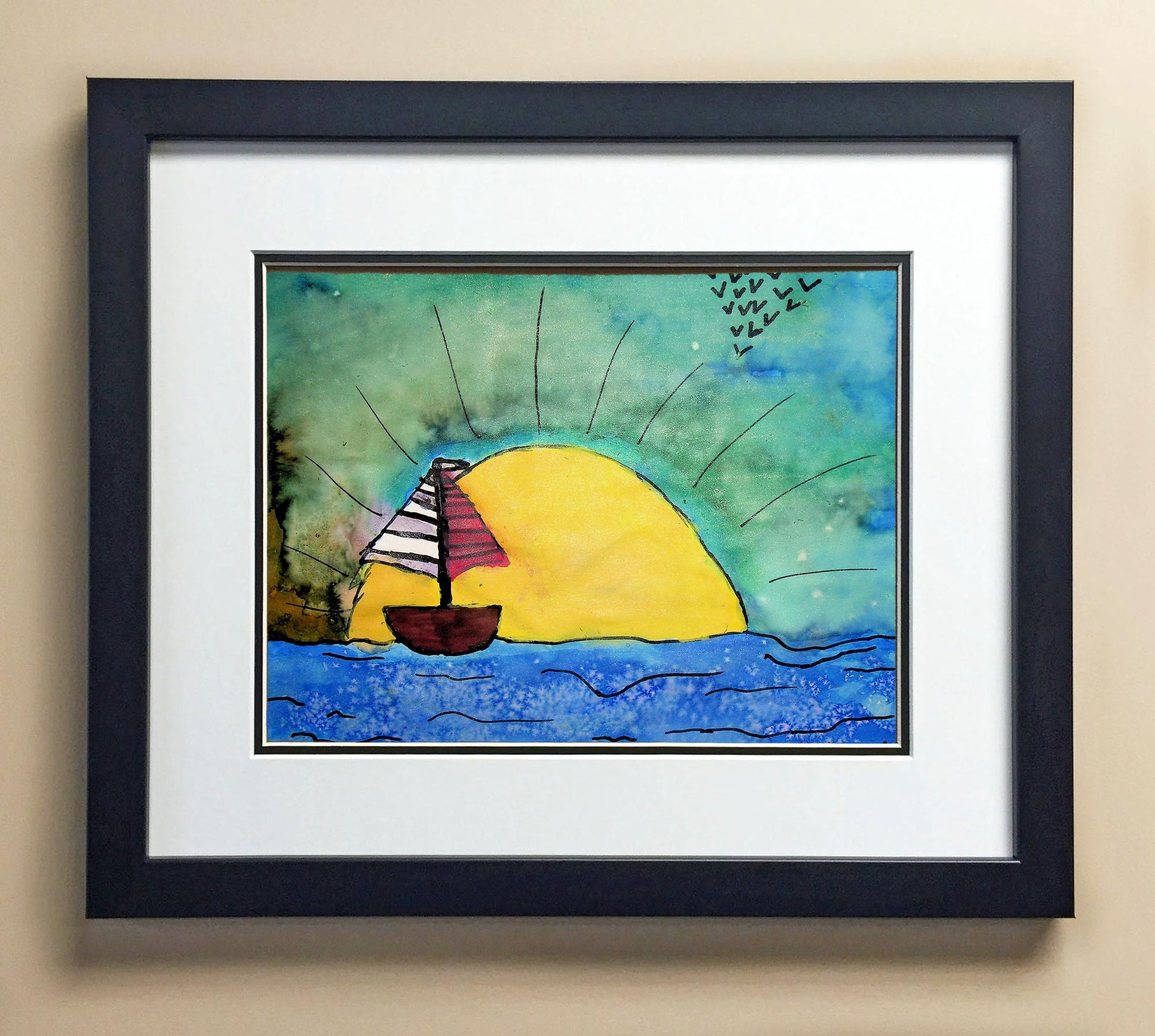 Included with the purchase is the Students Artwork, Frame, double matboard, shatter proof plexiglass, and a ready to hang backerboard with turnbuttons