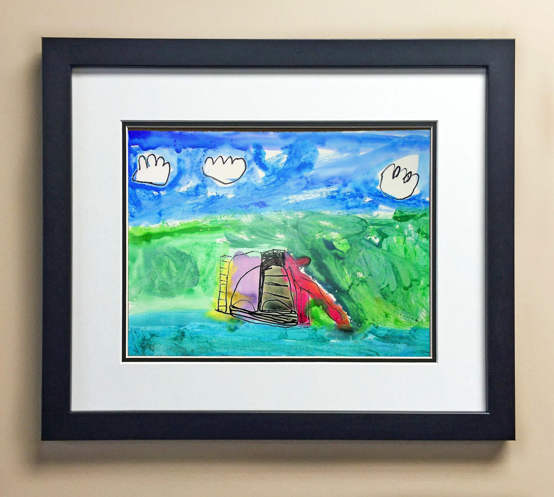 Included with the purchase is the Students Artwork, Frame, double matboard, shatter proof plexiglass, and a ready to hang backerboard with turnbuttons