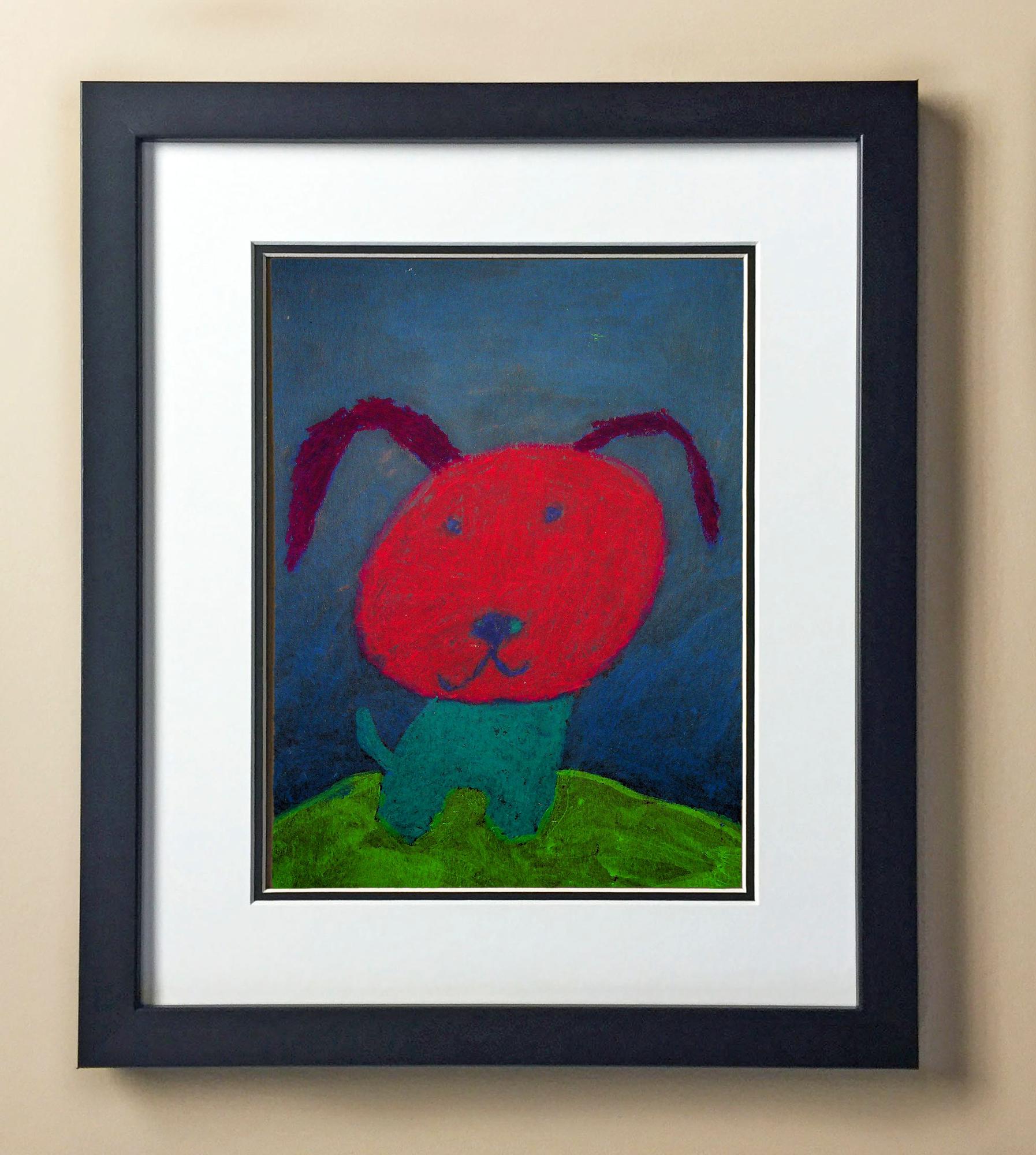 Included with the purchase is the Students Artwork, Frame, double matboard, shatter proof plexiglass, and a ready to hang backerboard with turnbuttons