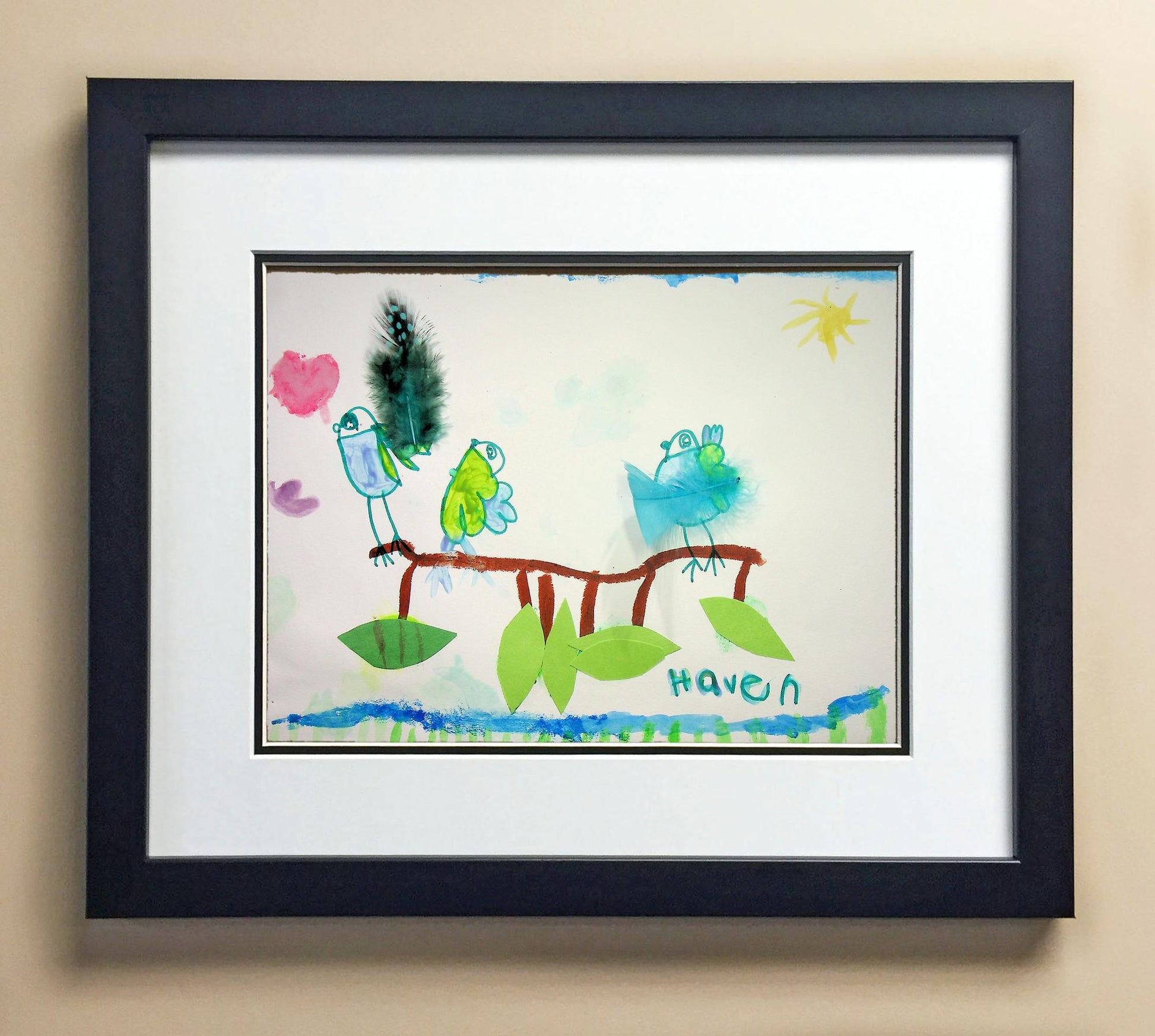 Included with the purchase is the Students Artwork, Frame, double matboard, shatter proof plexiglass, and a ready to hang backerboard with turnbuttons