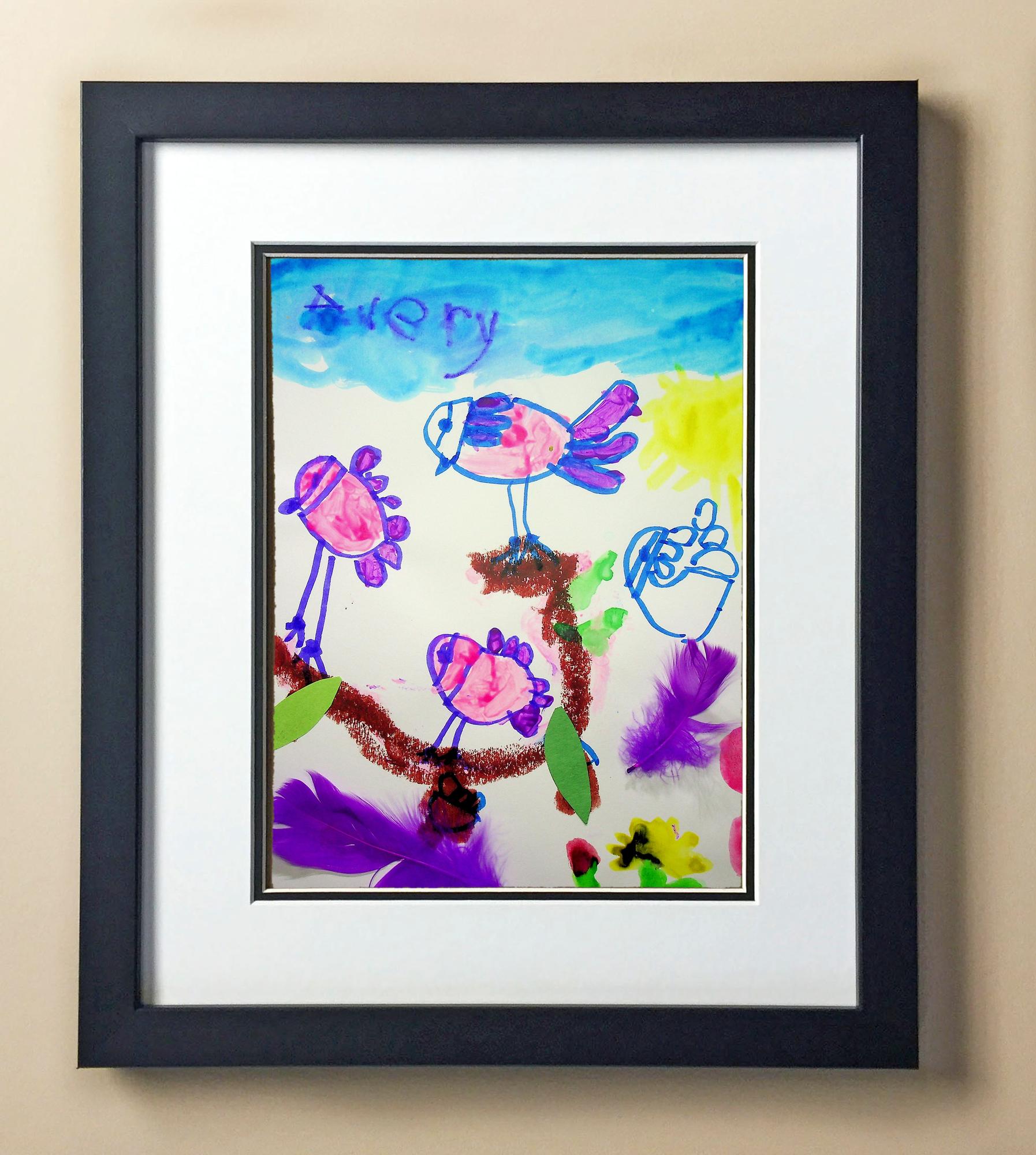 Included with the purchase is the Students Artwork, Frame, double matboard, shatter proof plexiglass, and a ready to hang backerboard with turnbuttons