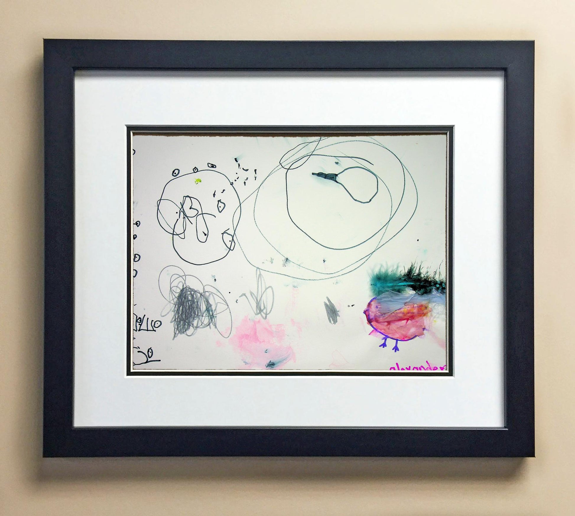 Included with the purchase is the Students Artwork, Frame, double matboard, shatter proof plexiglass, and a ready to hang backerboard with turnbuttons