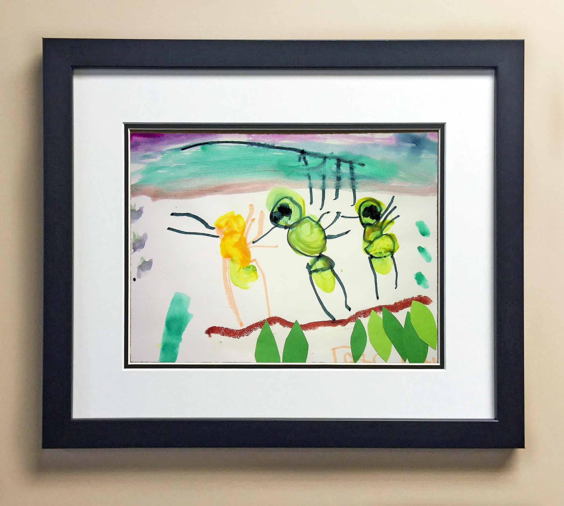 Included with the purchase is the Students Artwork, Frame, double matboard, shatter proof plexiglass, and a ready to hang backerboard with turnbuttons