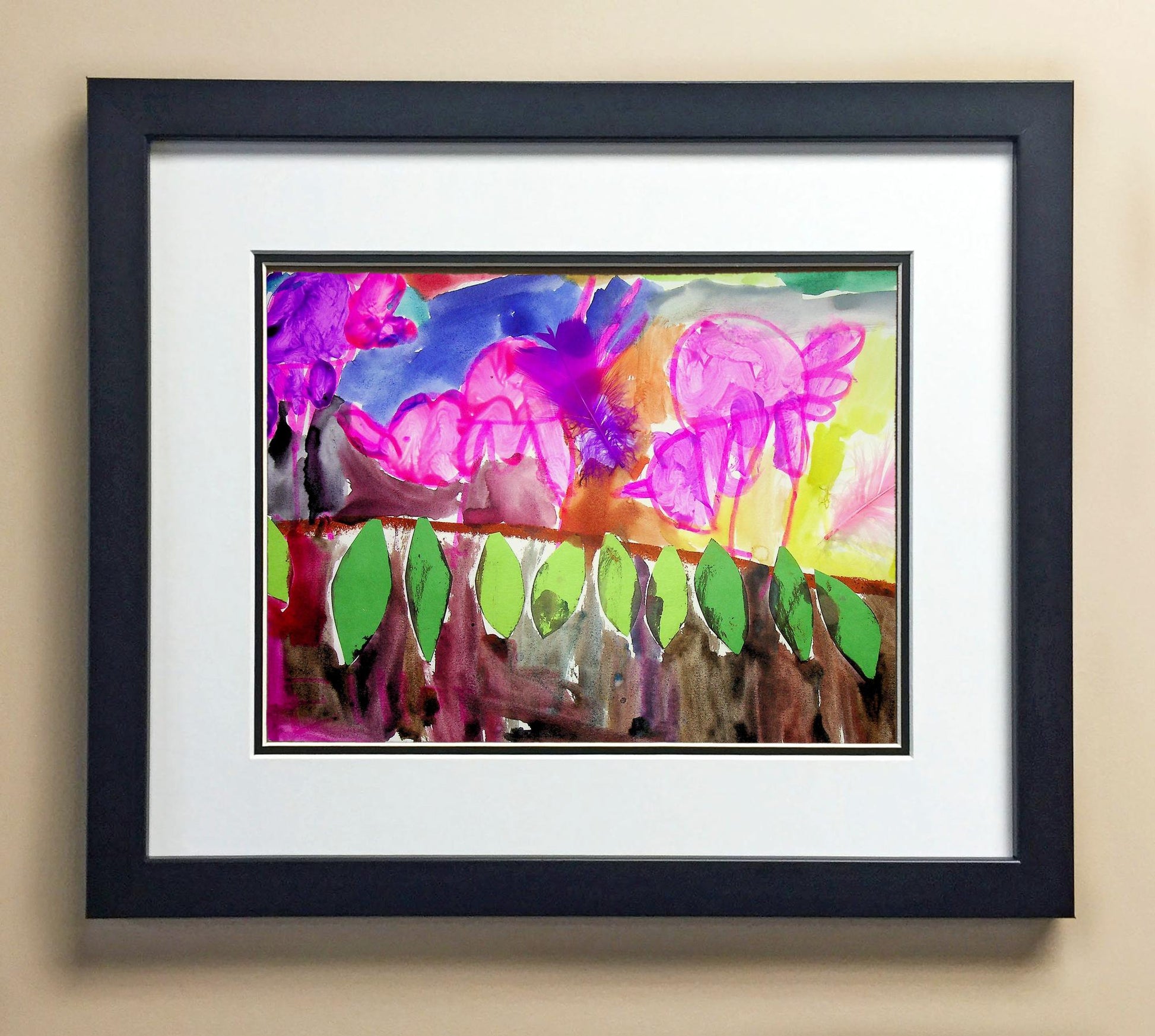 Included with the purchase is the Students Artwork, Frame, double matboard, shatter proof plexiglass, and a ready to hang backerboard with turnbuttons