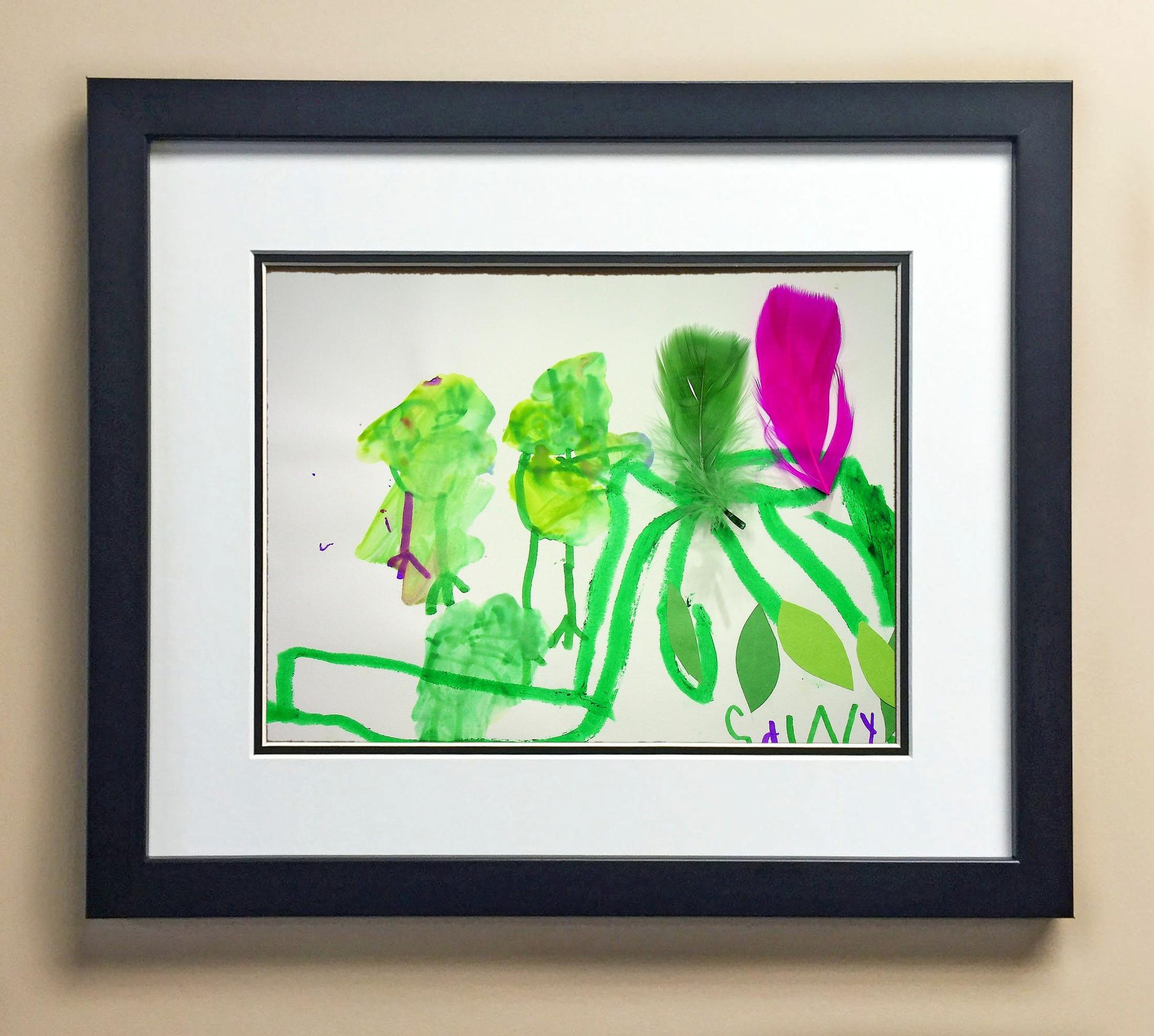 Included with the purchase is the Students Artwork, Frame, double matboard, shatter proof plexiglass, and a ready to hang backerboard with turnbuttons