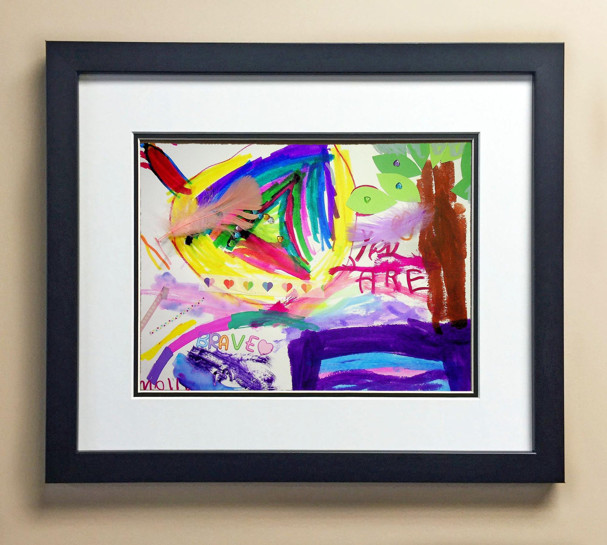 Included with the purchase is the Students Artwork, Frame, double matboard, shatter proof plexiglass, and a ready to hang backerboard with turnbuttons