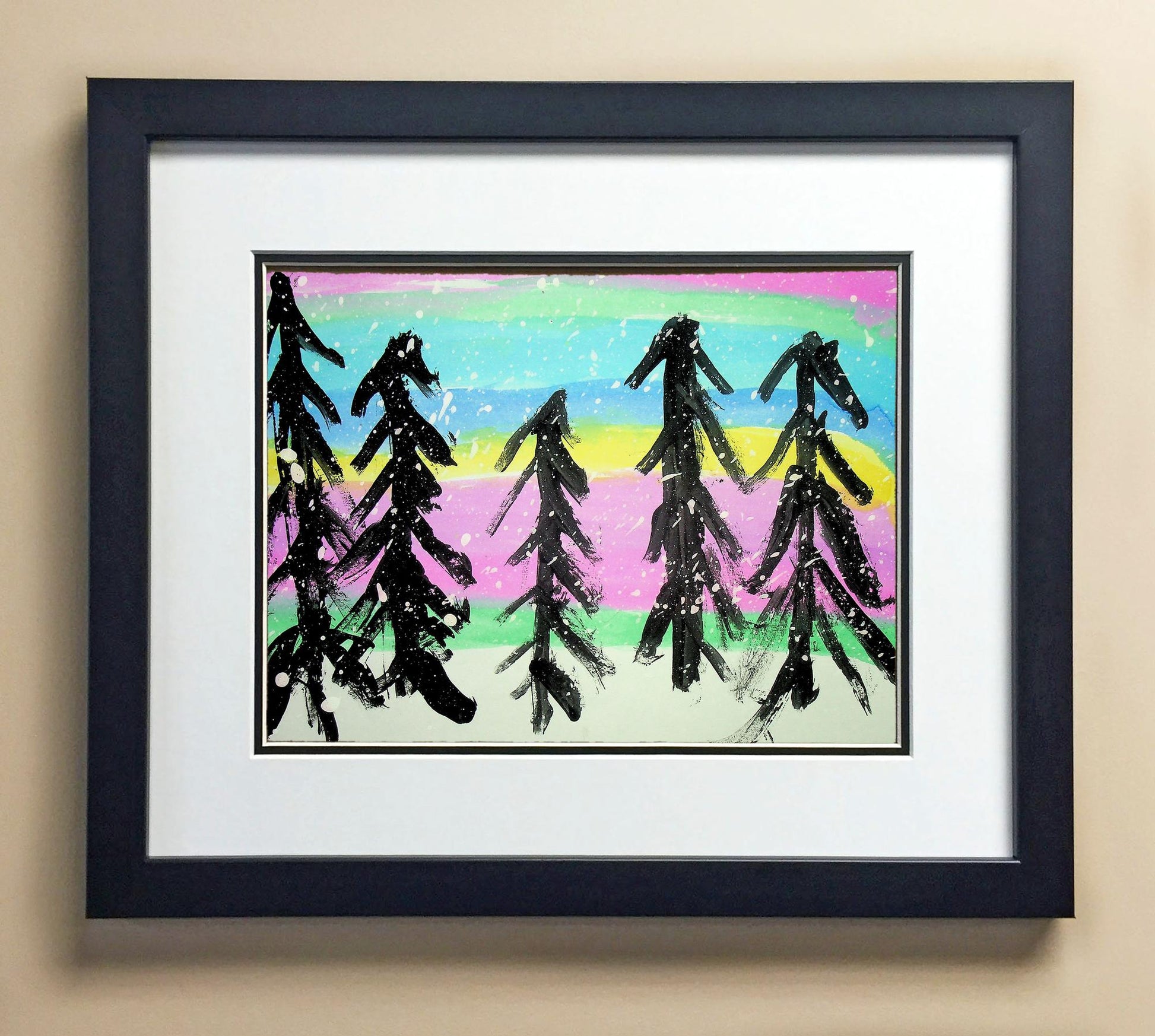 Included with the purchase is the Students Artwork, Frame, double matboard, shatter proof plexiglass, and a ready to hang backerboard with turnbuttons