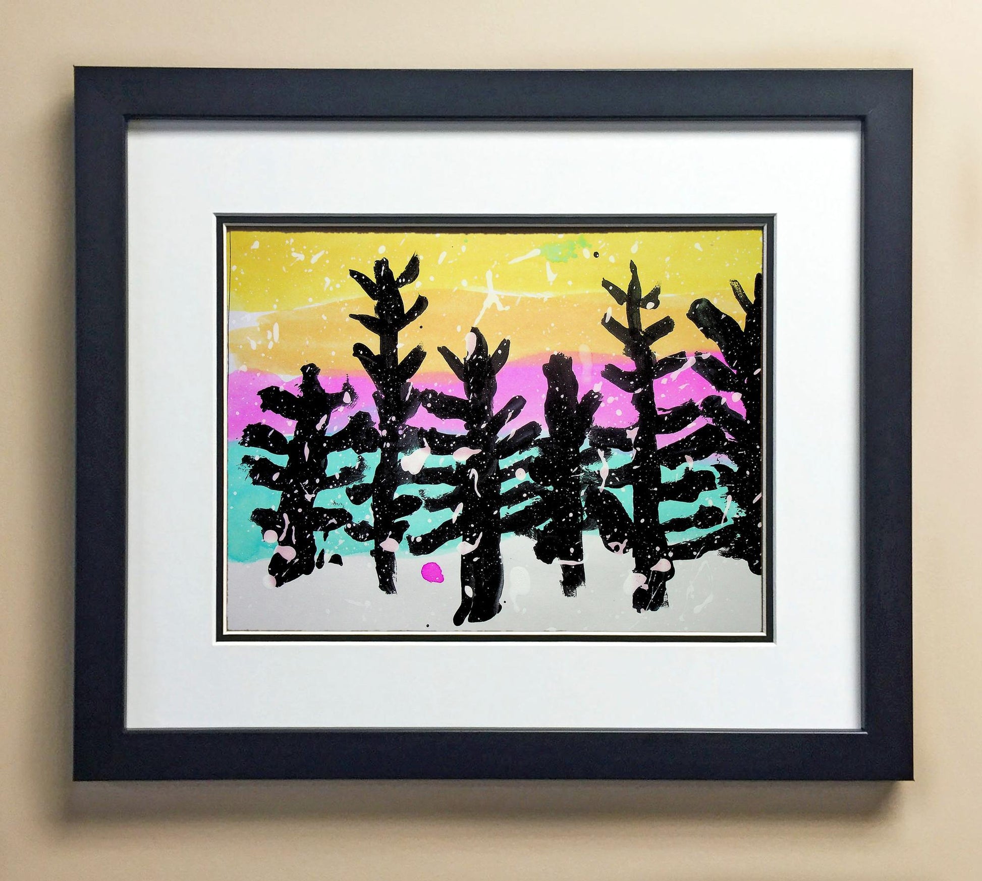 Included with the purchase is the Students Artwork, Frame, double matboard, shatter proof plexiglass, and a ready to hang backerboard with turnbuttons