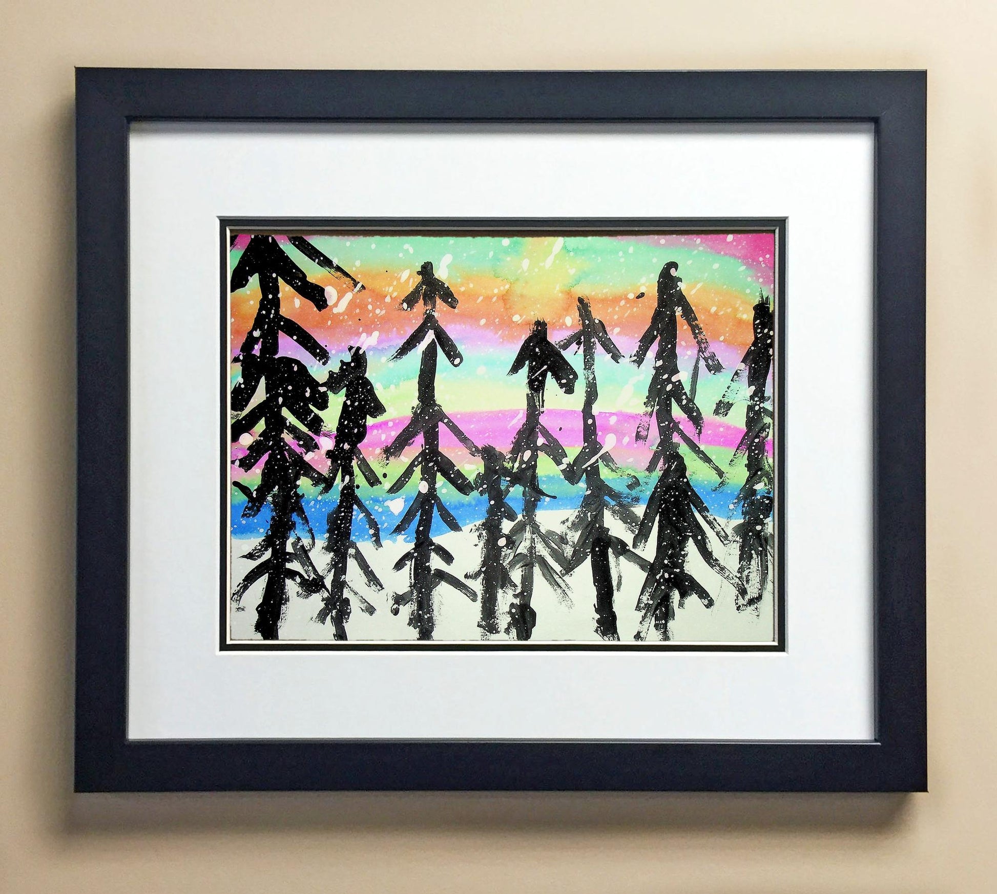 Included with the purchase is the Students Artwork, Frame, double matboard, shatter proof plexiglass, and a ready to hang backerboard with turnbuttons