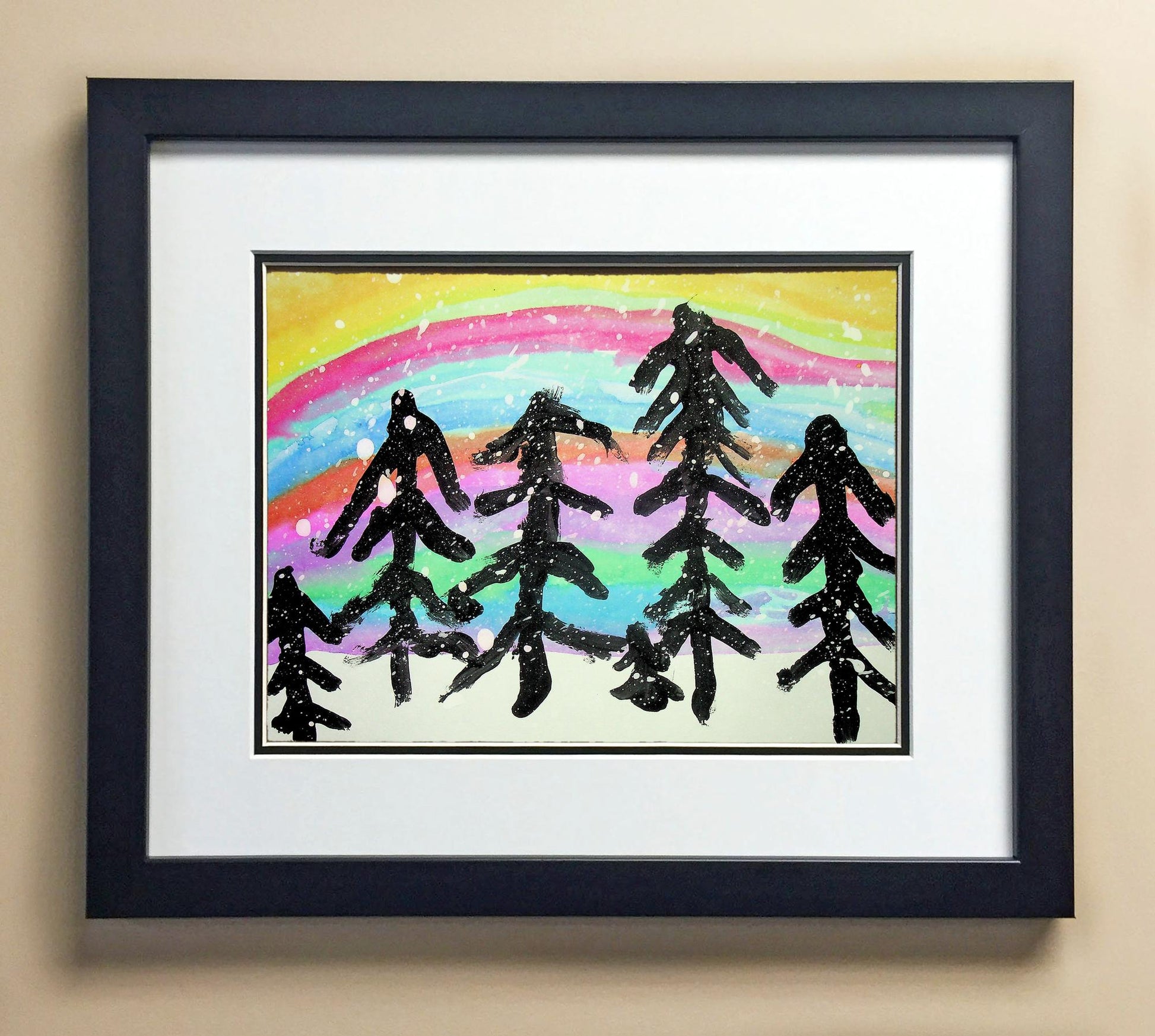 Included with the purchase is the Students Artwork, Frame, double matboard, shatter proof plexiglass, and a ready to hang backerboard with turnbuttons