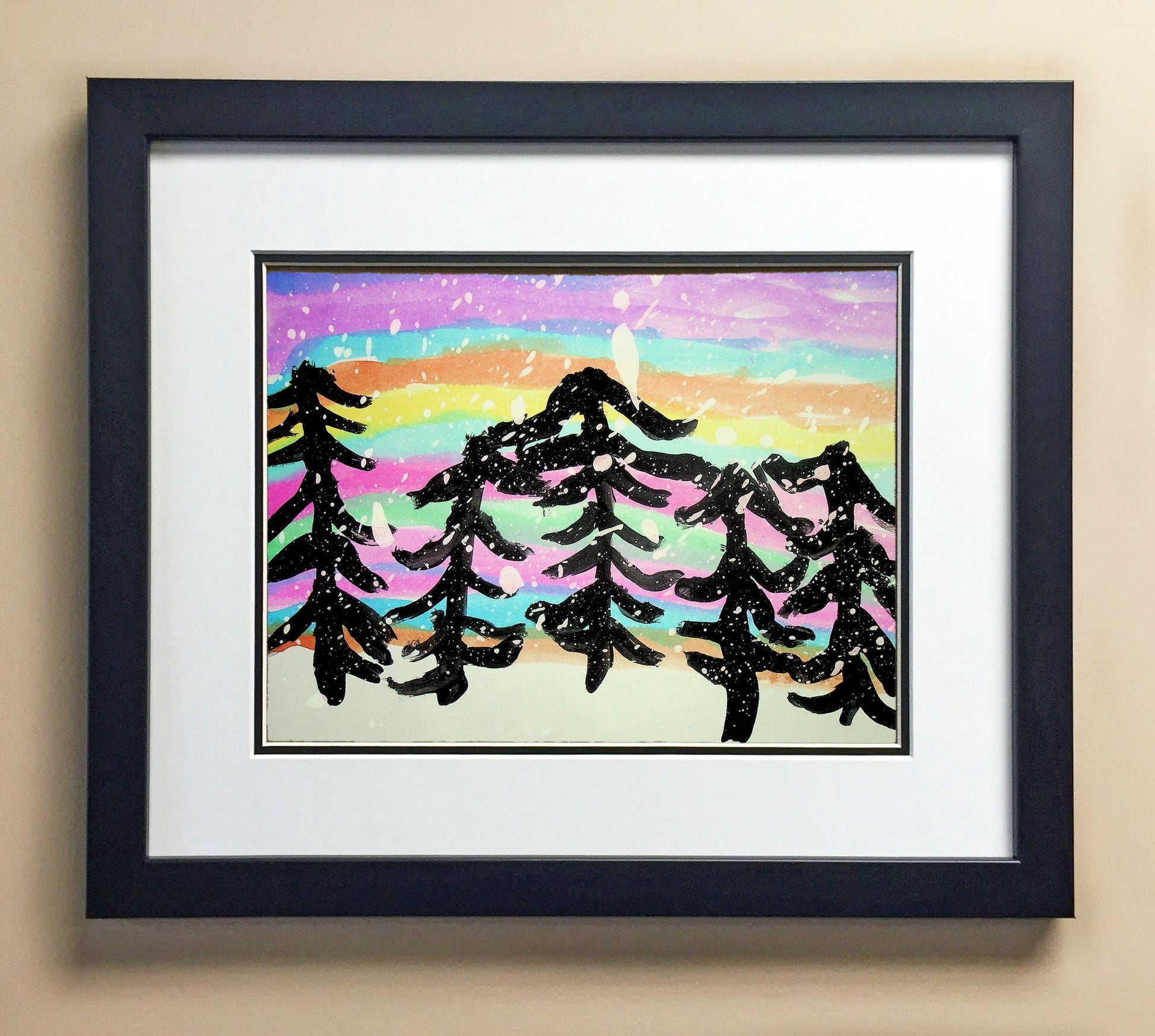 Included with the purchase is the Students Artwork, Frame, double matboard, shatter proof plexiglass, and a ready to hang backerboard with turnbuttons