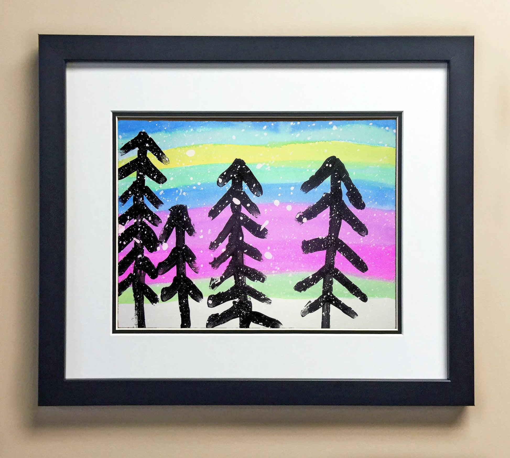 Included with the purchase is the Students Artwork, Frame, double matboard, shatter proof plexiglass, and a ready to hang backerboard with turnbuttons