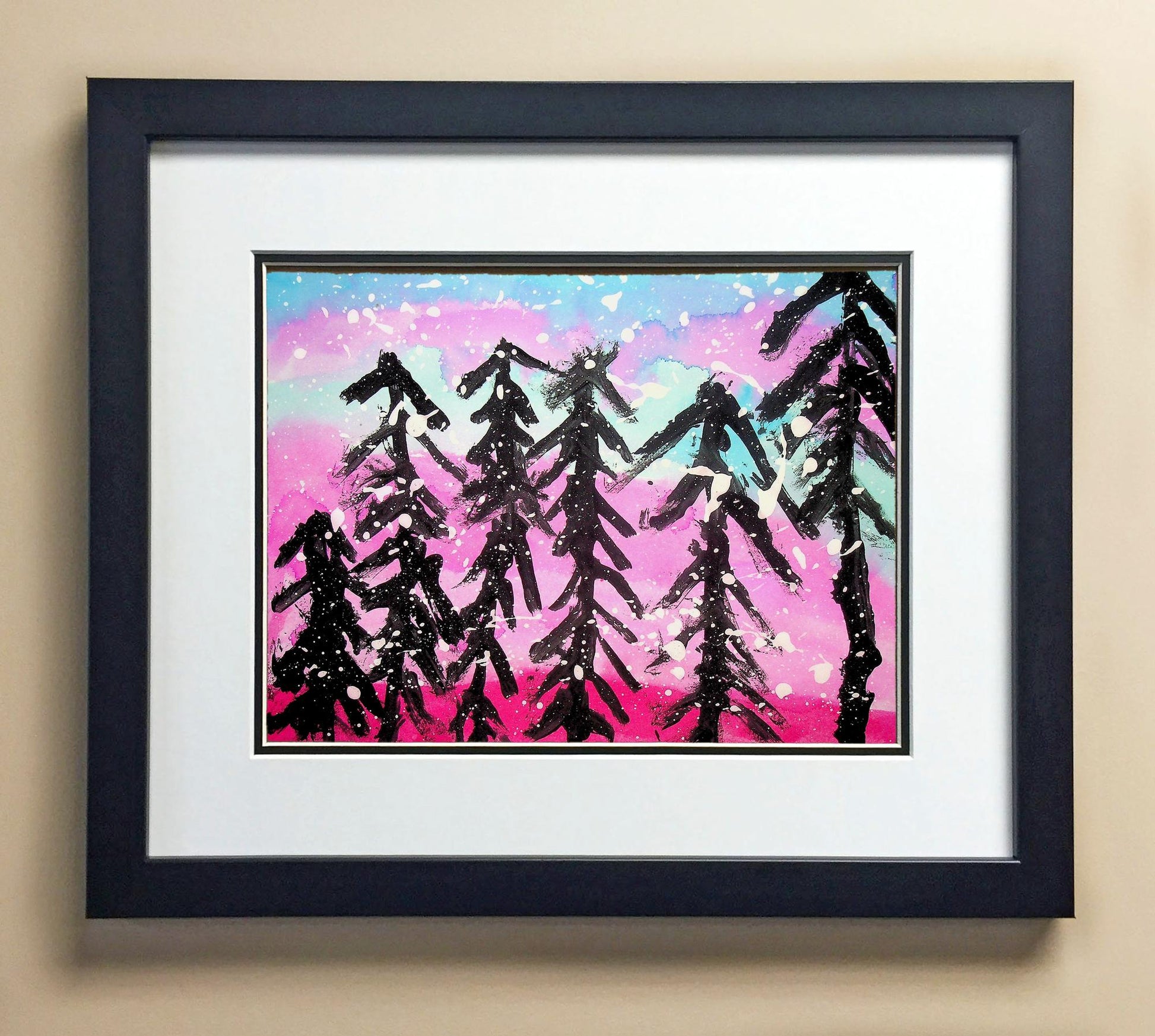 Included with the purchase is the Students Artwork, Frame, double matboard, shatter proof plexiglass, and a ready to hang backerboard with turnbuttons