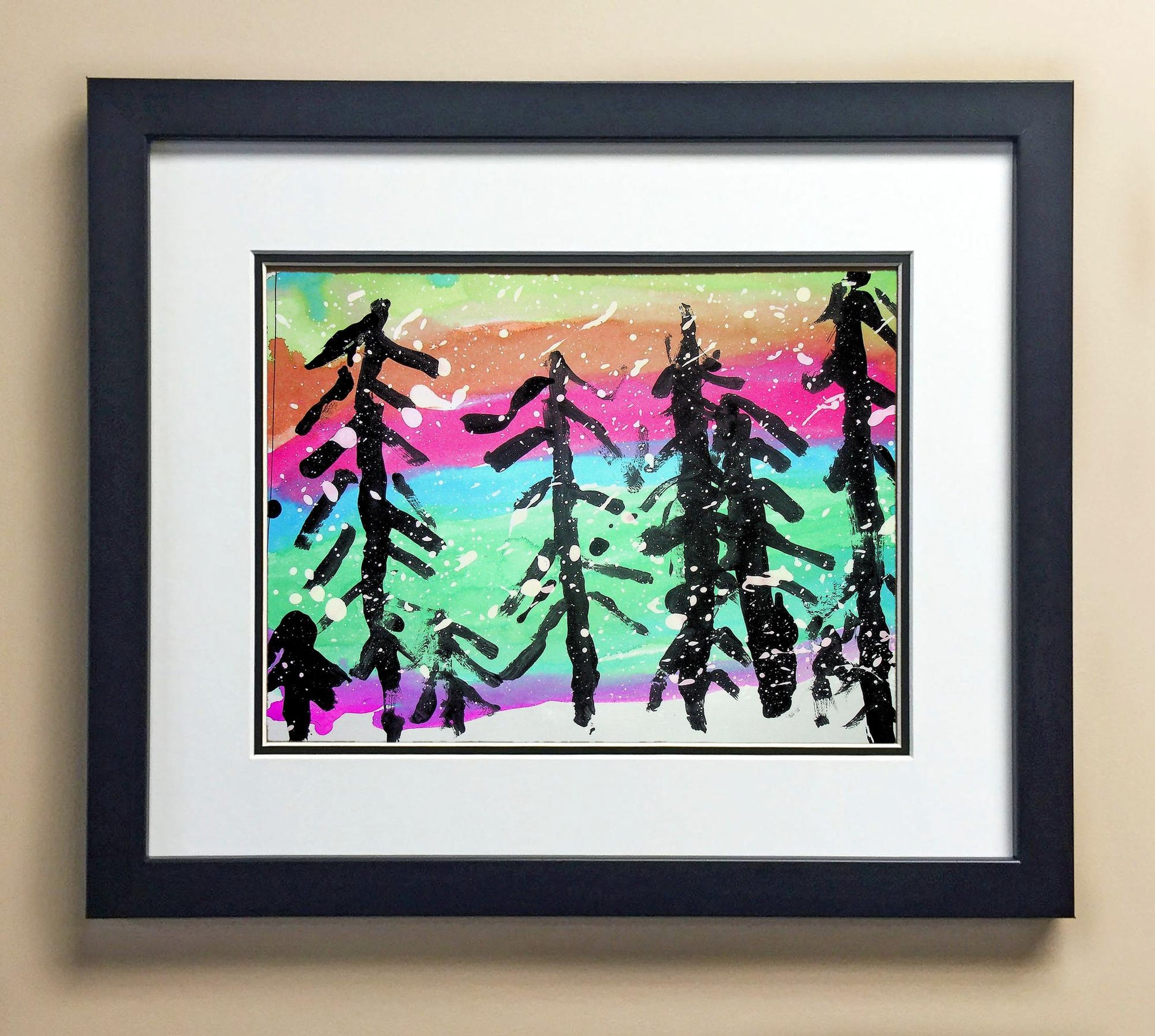 Included with the purchase is the Students Artwork, Frame, double matboard, shatter proof plexiglass, and a ready to hang backerboard with turnbuttons